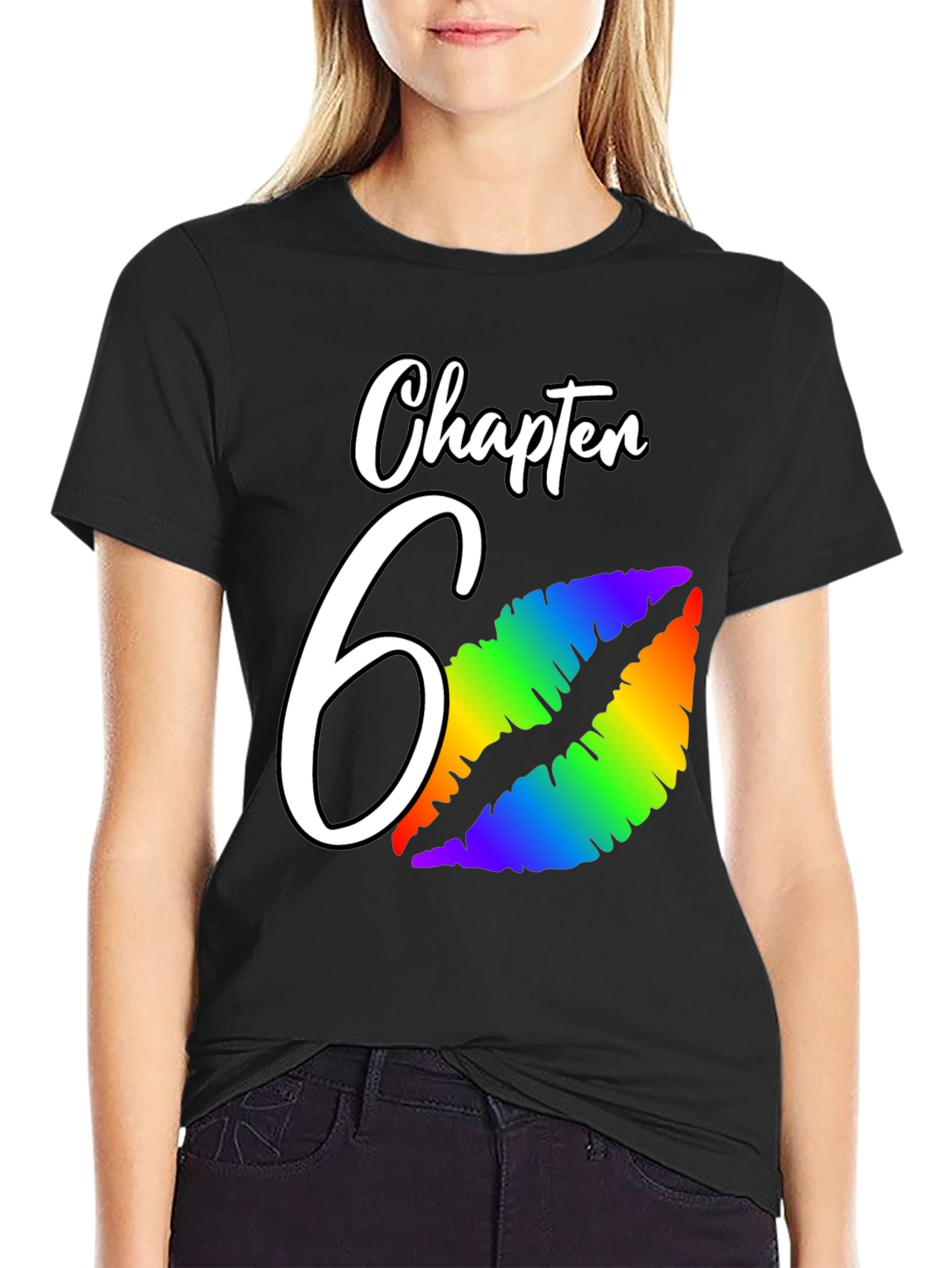 Celebrate a milestone with this unique 'Chapter 60' T-shirt. Made from comfortable, breathable fabric, this black tee features a playful design combining the words 'Chapter' and '60' with a vibrant rainbow lips graphic. This eye-catching design makes it a perfect birthday gift or party attire for someone turning 60. The bold, colorful lips add a fun and celebratory touch. Show off your vibrant personality and mark this special occasion with style. This shirt is sure to be a conversation starter and a memorable keepsake.