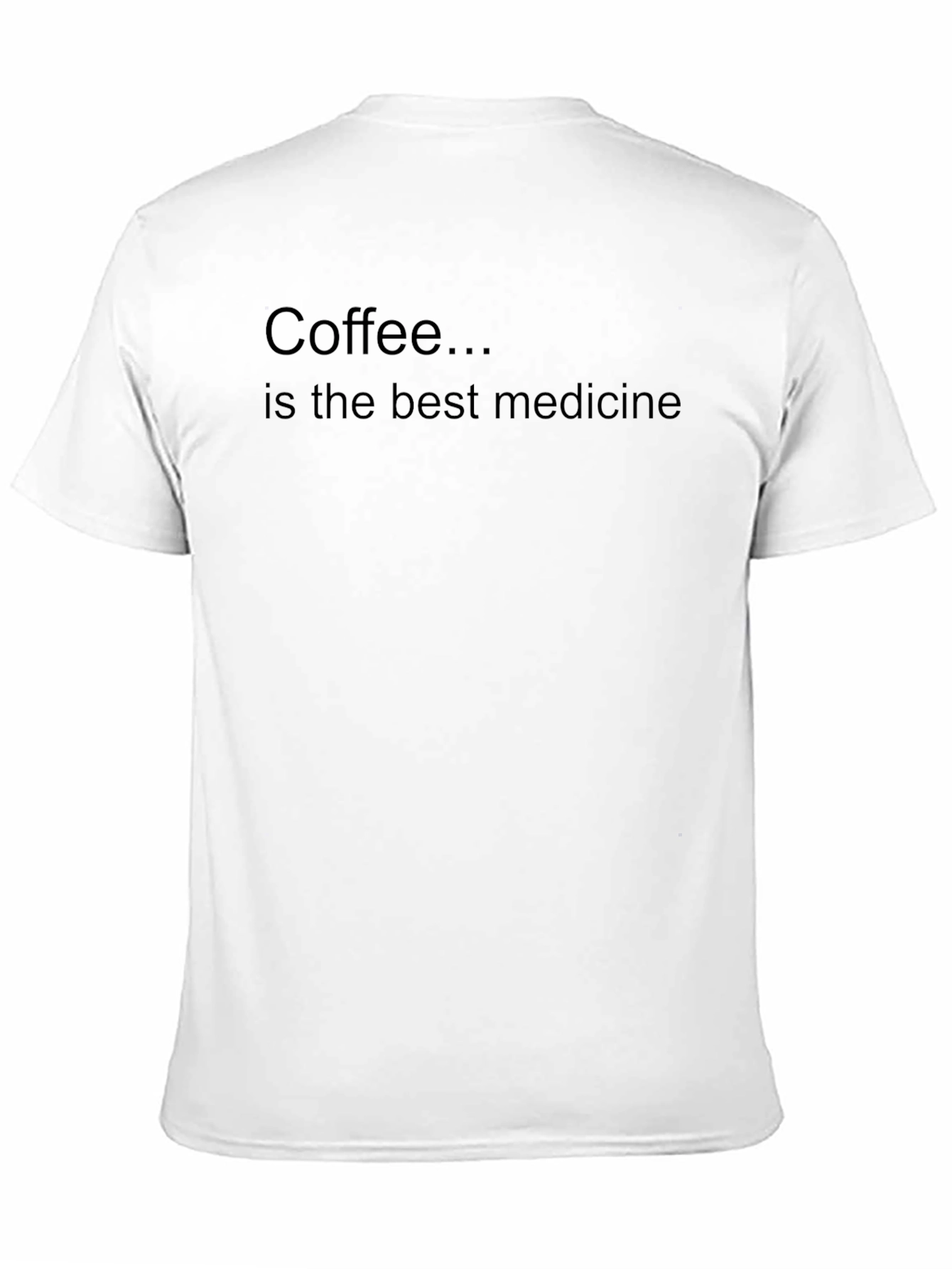 Show your love for coffee with this unique t-shirt! Featuring the phrase "Coffee... is the best medicine", this tee is perfect for coffee lovers. Made from soft, breathable cotton, it offers a comfortable fit for everyday wear. The design is simple yet eye-catching, making it a great addition to any casual wardrobe. Whether you're heading to your favorite cafe or relaxing at home, this t-shirt is sure to make a statement. It's an ideal gift for coffee enthusiasts and anyone who appreciates a good dose of caffeine!