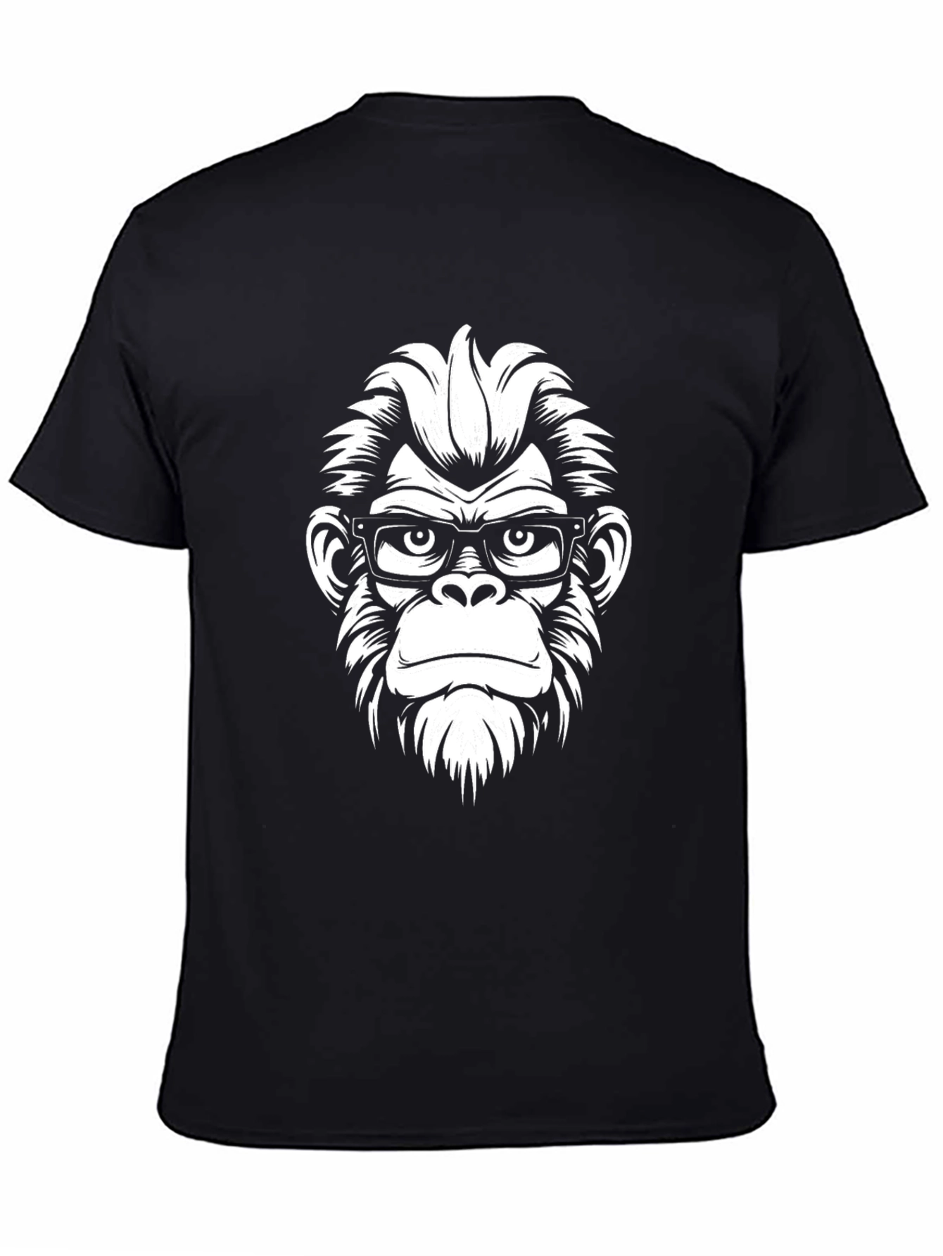 Show off your playful side with this unique black t-shirt. This eye-catching tee features a bold, detailed graphic of an ape wearing glasses, adding a touch of intellectual charm. Made from a comfortable, breathable fabric, this shirt is perfect for everyday wear. Its classic fit ensures a relaxed silhouette, making it ideal for casual outings, weekend adventures, or lounging at home. Pair it with jeans, shorts, or joggers for a versatile, stylish look. Make a statement and express your individuality with this one-of-a-kind ape graphic tee.