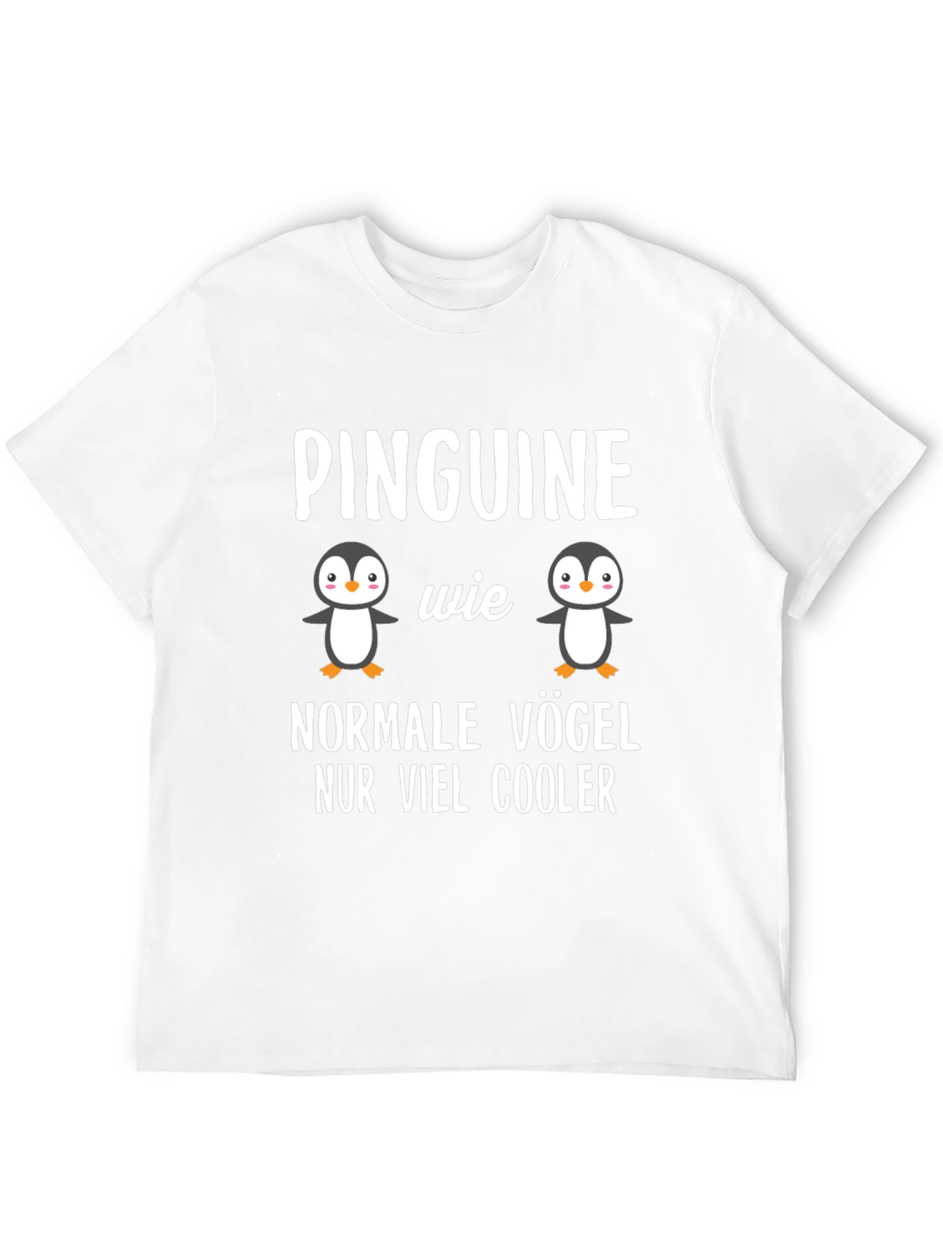 Show off your love for penguins with this unique graphic tee! This black t-shirt features a playful design with two adorable penguin cartoon characters, accompanied by the German text "Pinguine wie normale Vögel NUR VIEL COOLER", which translates to "Penguins like normal birds BUT MUCH COOLER". Made from a soft, comfortable fabric, this shirt is perfect for casual wear, outings with friends, or as a fun conversation starter. Express your quirky side with this eye-catching penguin tee!