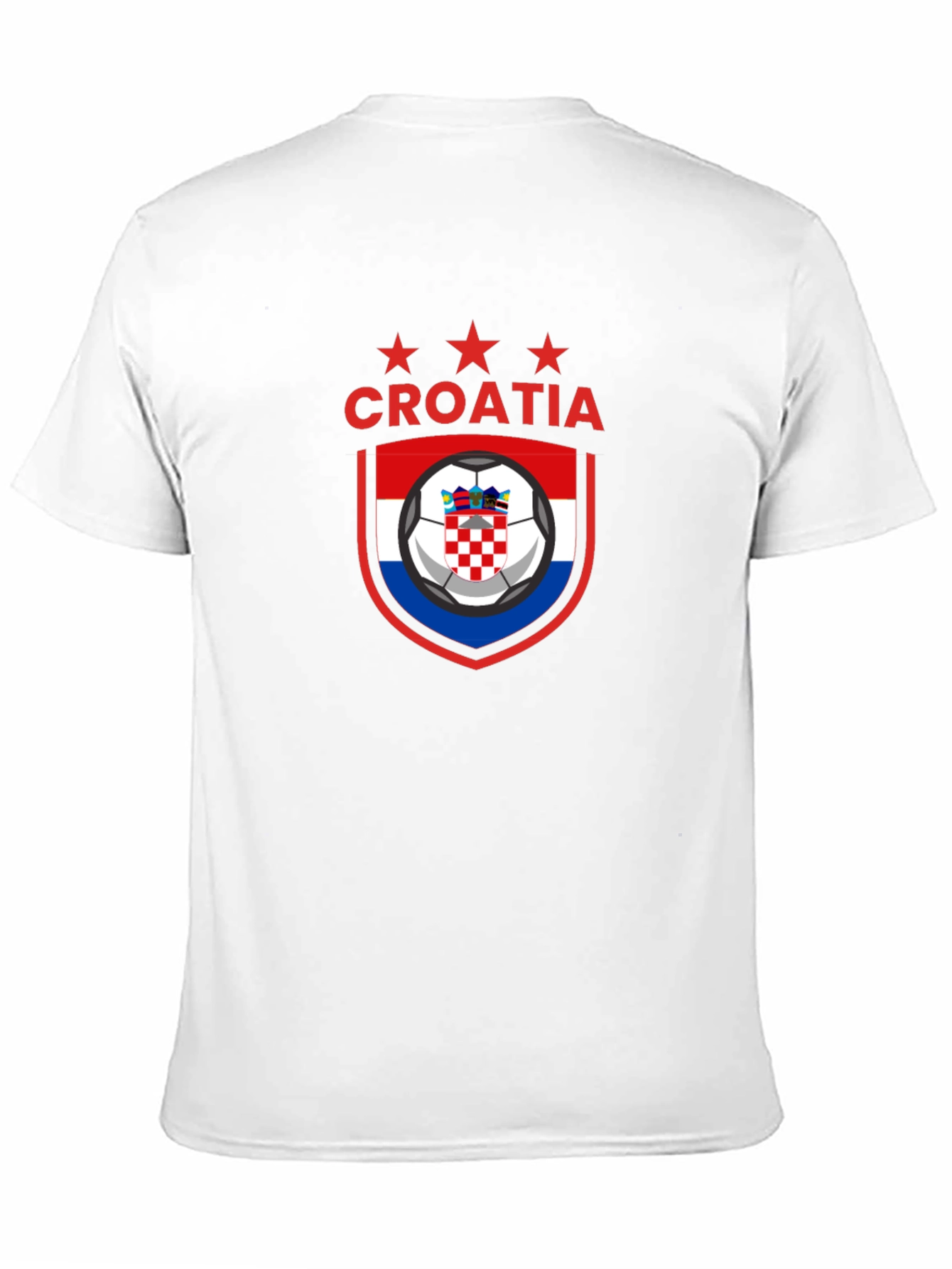 Show your support for Croatia with this bold graphic t-shirt. Featuring a striking design with the Croatian flag and a soccer ball within a red and blue shield, topped with three red stars and the word 'CROATIA,' this tee is perfect for fans. The black shirt offers a comfortable fit. Ideal for game days, casual outings, or showing your Croatian pride. Made from comfortable materials, this shirt is a stylish way to represent your favorite team or country.