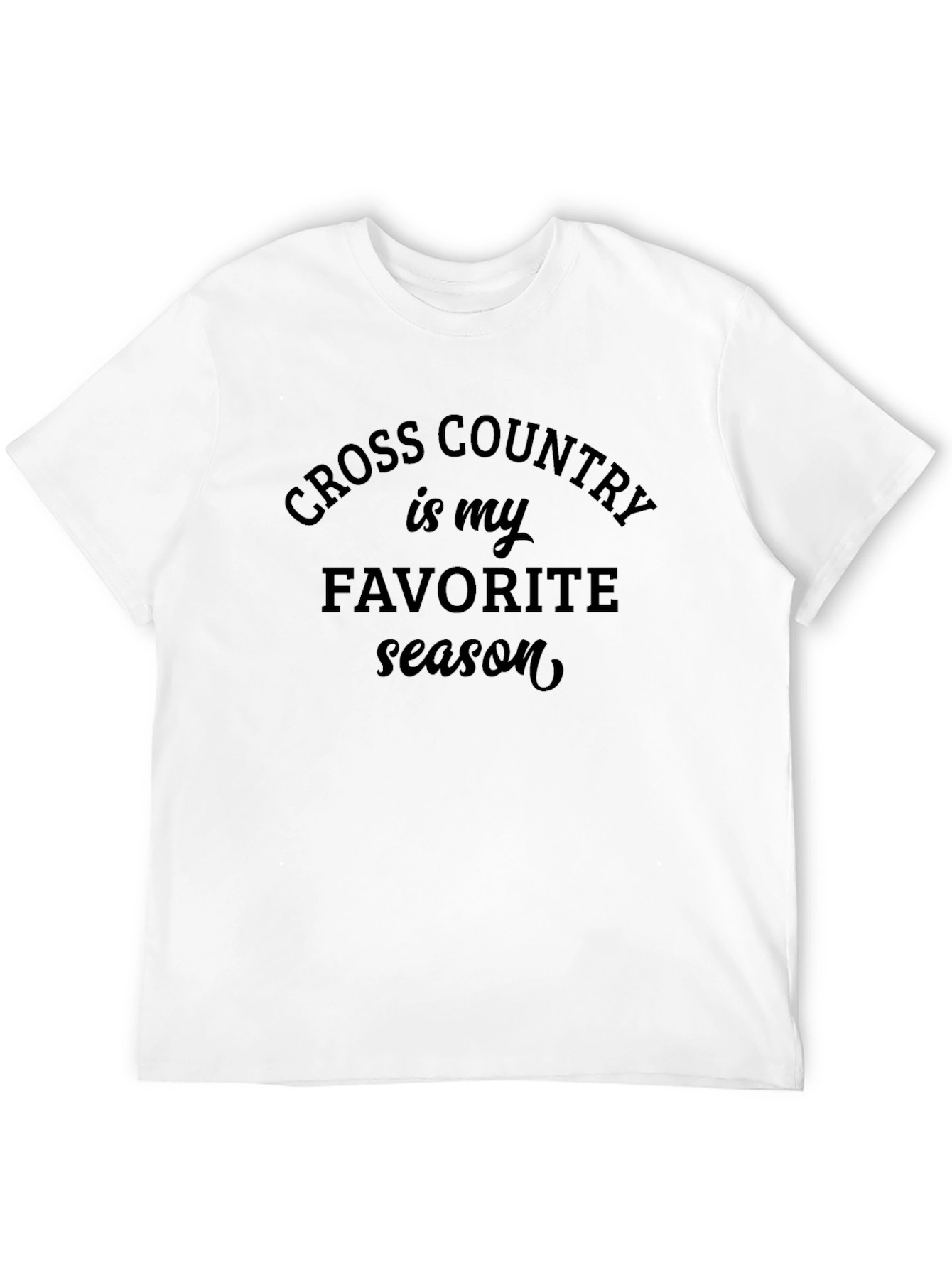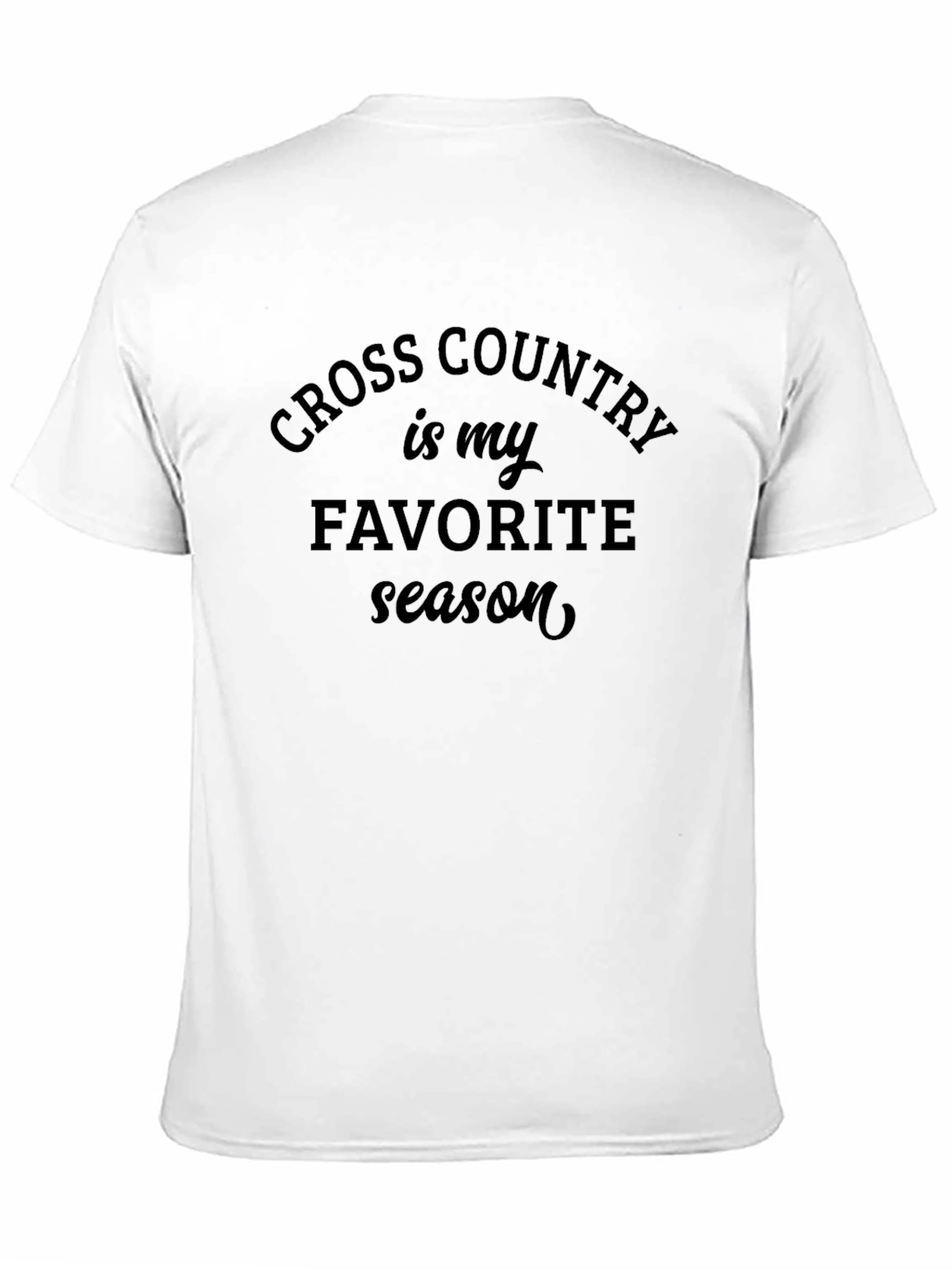 Show off your love for cross country with this stylish black t-shirt! The shirt features a bold, curved text design that reads "Cross Country is my FAVORITE season." Made from a comfortable-looking fabric, this tee is perfect for casual wear, workouts, or supporting your favorite cross country team. Its classic crew neck and short sleeve design ensures a versatile fit for everyday comfort. Express your passion for the sport with this must-have wardrobe staple!