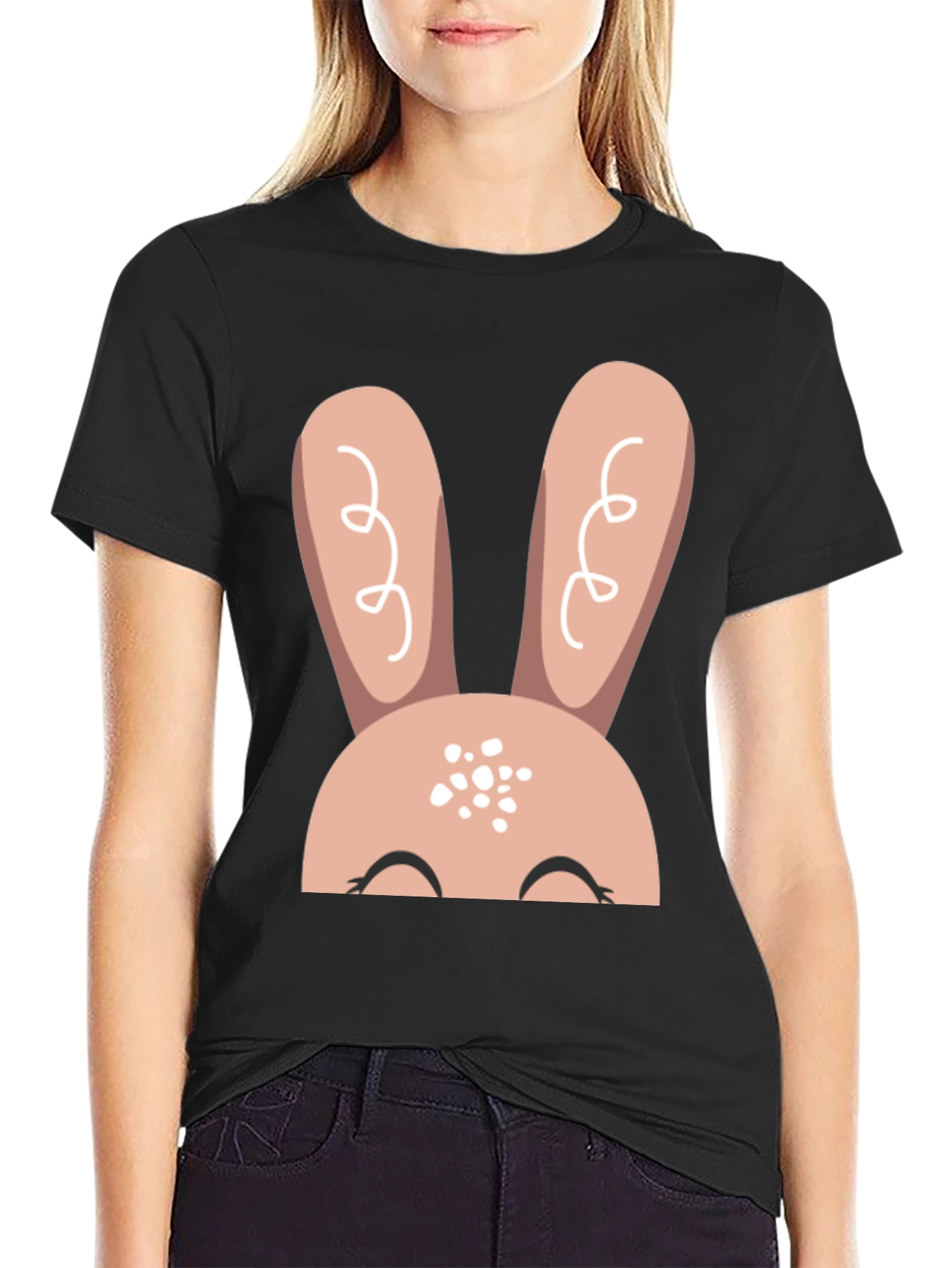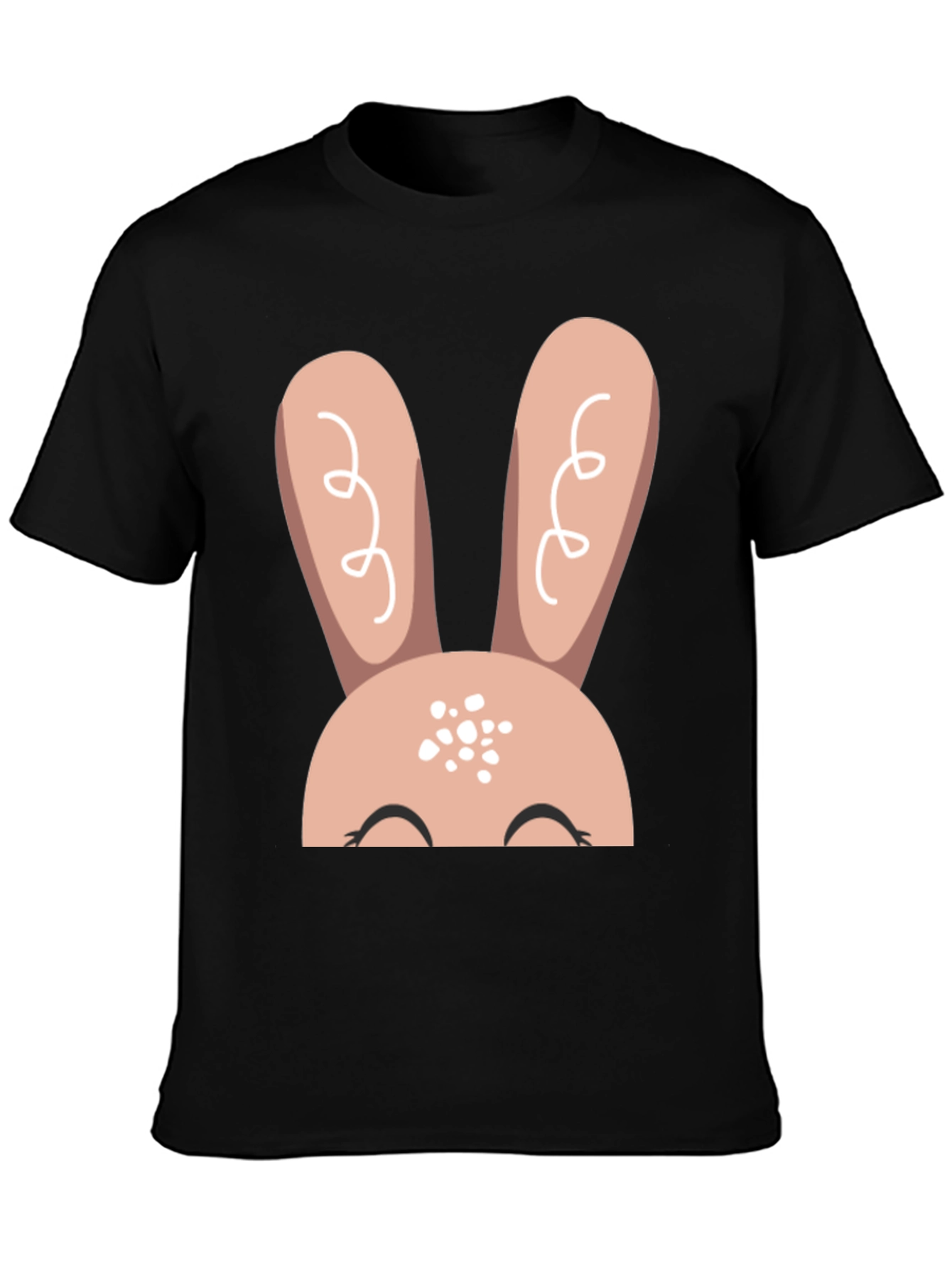 Hop into Easter with this adorable black t-shirt featuring a playful bunny graphic. The design showcases the bunny's ears with whimsical swirls and a peek of its face, complete with charming little eyes and cute spots. Made from comfortable, breathable fabric, this tee is perfect for Easter egg hunts, family gatherings, or casual spring outings. Show off your festive spirit in style with this delightful and unique t-shirt. Get yours today and spread the Easter cheer!