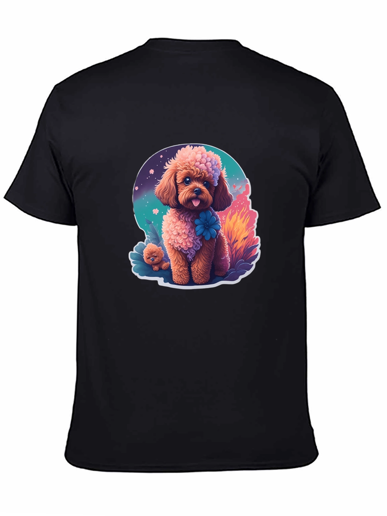 Show off your love for adorable dogs with this charming graphic tee! Featuring a vibrant, stylized cartoon of a poodle pup with a playful floral design, this black t-shirt is sure to turn heads. The high-quality print showcases bright colors and intricate details, while the soft cotton blend ensures a comfortable fit all day long. Ideal for casual outings, dog lovers' meetups, or simply adding a touch of whimsy to your everyday style. This unique tee makes a great gift for any poodle enthusiast or anyone who appreciates cute and quirky fashion. Stand out from the crowd with this eye-catching and comfortable statement piece!