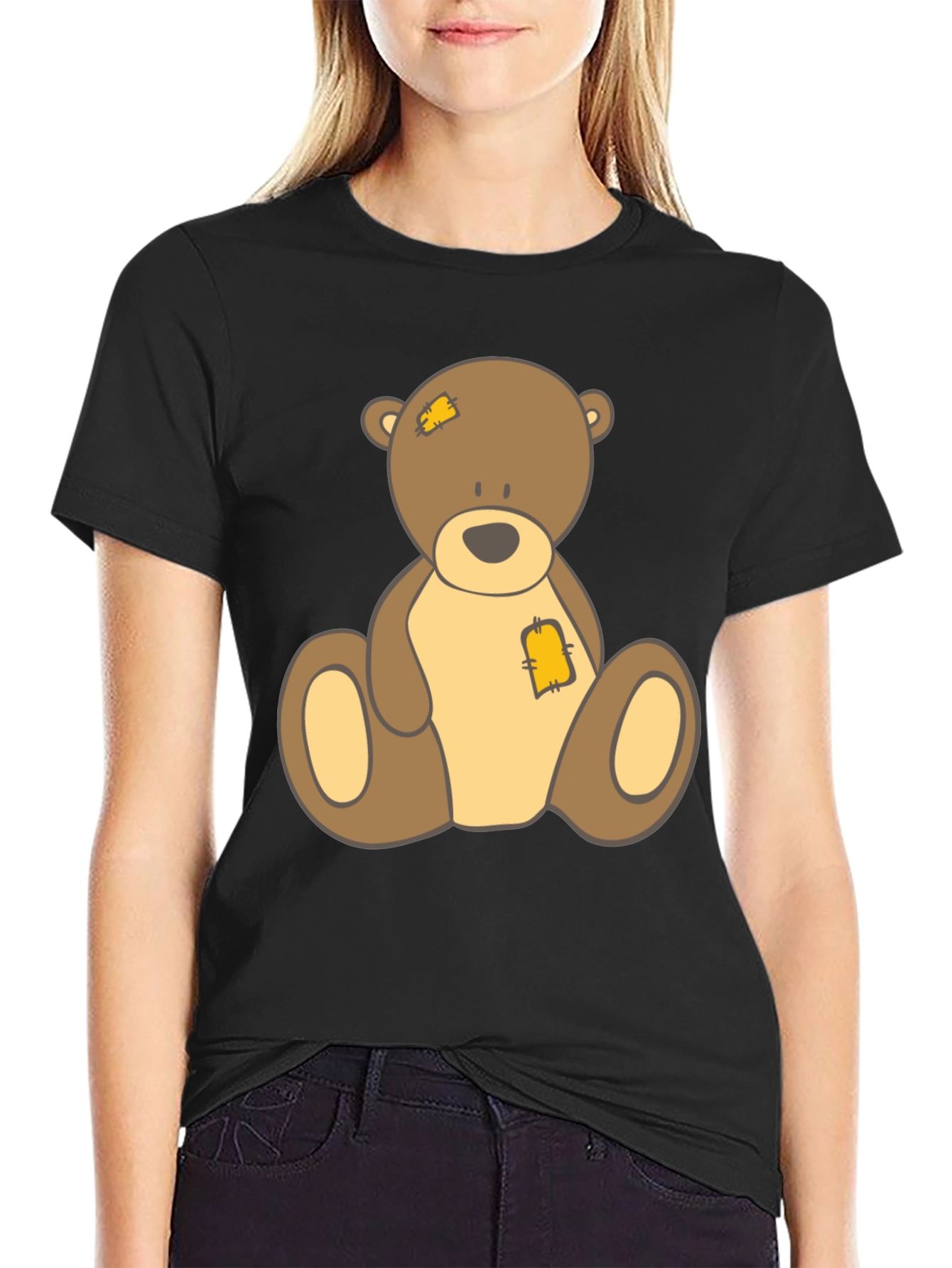 Show off your playful side with this adorable black t-shirt! Featuring a charming cartoon teddy bear graphic with cute patchwork details, this tee is perfect for adding a touch of whimsy to your everyday style. The bear design is eye-catching and fun, making it a great conversation starter. Made from soft, breathable fabric, this comfortable t-shirt is ideal for casual outings, lounging at home, or as a unique gift for bear lovers. Pair it with jeans, shorts, or a skirt for a versatile and effortlessly cool look. Get ready to spread some joy with this charming teddy bear tee!