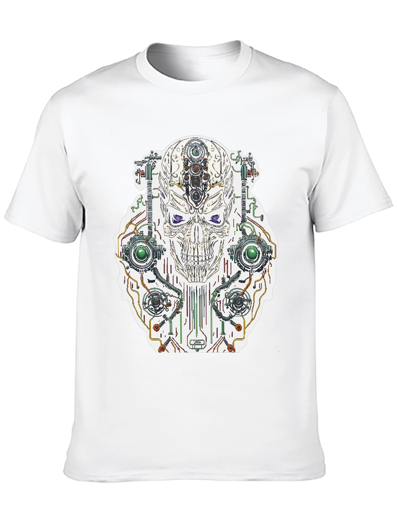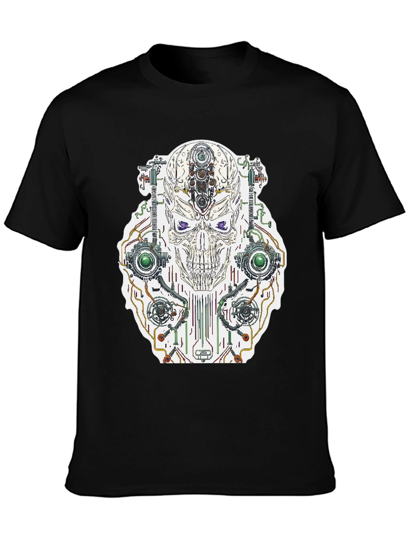 Cyberpunk Skull Graphic Tee - Cool Sci-Fi Shirt