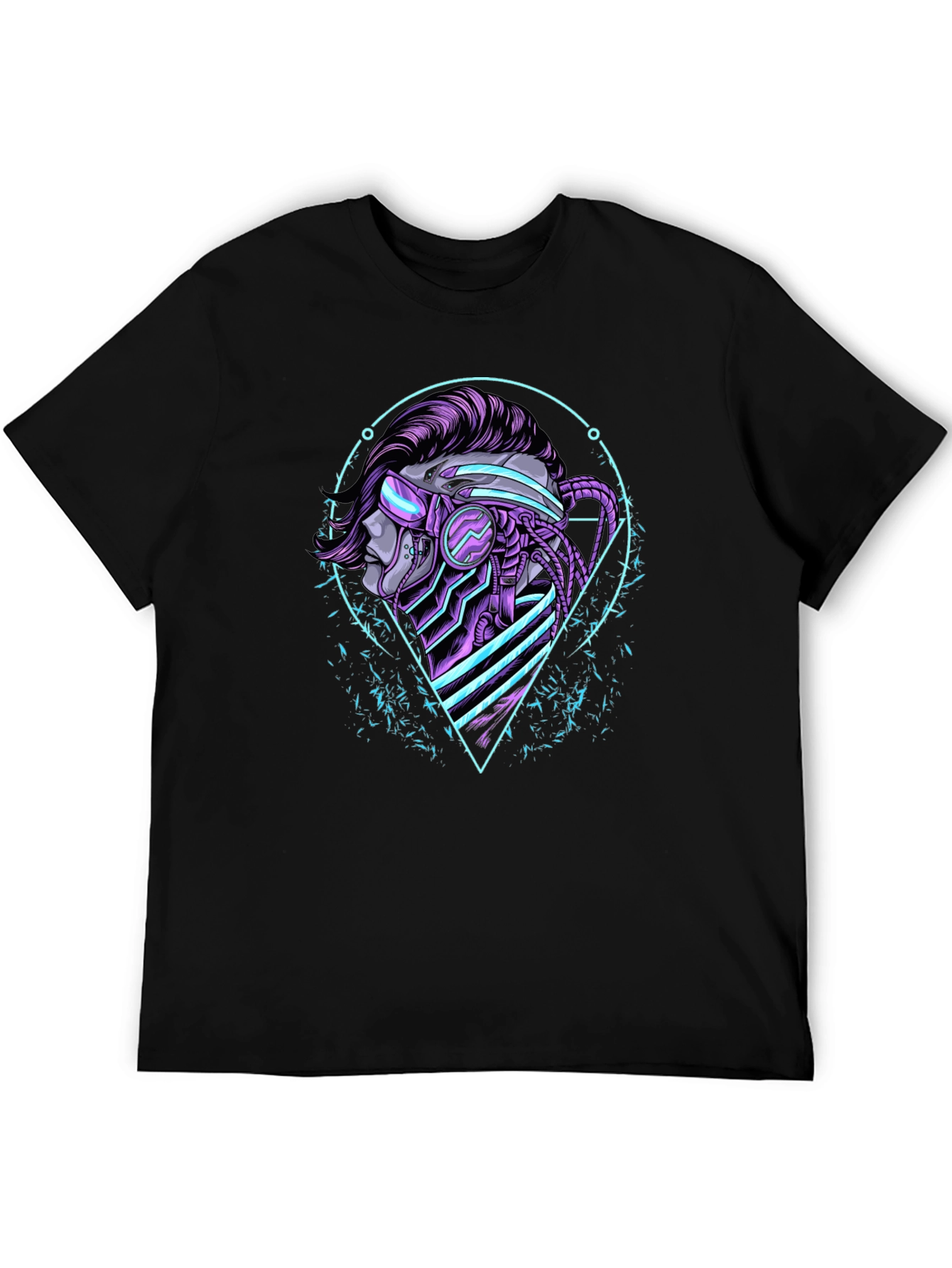 Step into the future with this eye-catching cyberpunk t-shirt. Featuring a bold graphic design of a cybernetically enhanced character, this tee is perfect for those who love sci-fi and futuristic styles. The detailed artwork showcases vibrant neon colors against a sleek black backdrop. Made from a soft, comfortable fabric, this t-shirt ensures a great fit and long-lasting wear. Ideal for casual outings, gaming sessions, or expressing your unique personality, this cyberpunk t-shirt is sure to turn heads and spark conversations. Elevate your wardrobe with this distinctive and trendy piece.