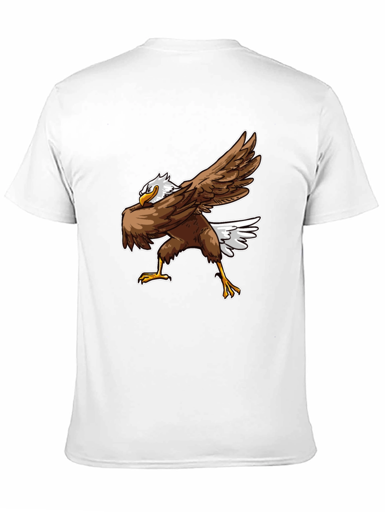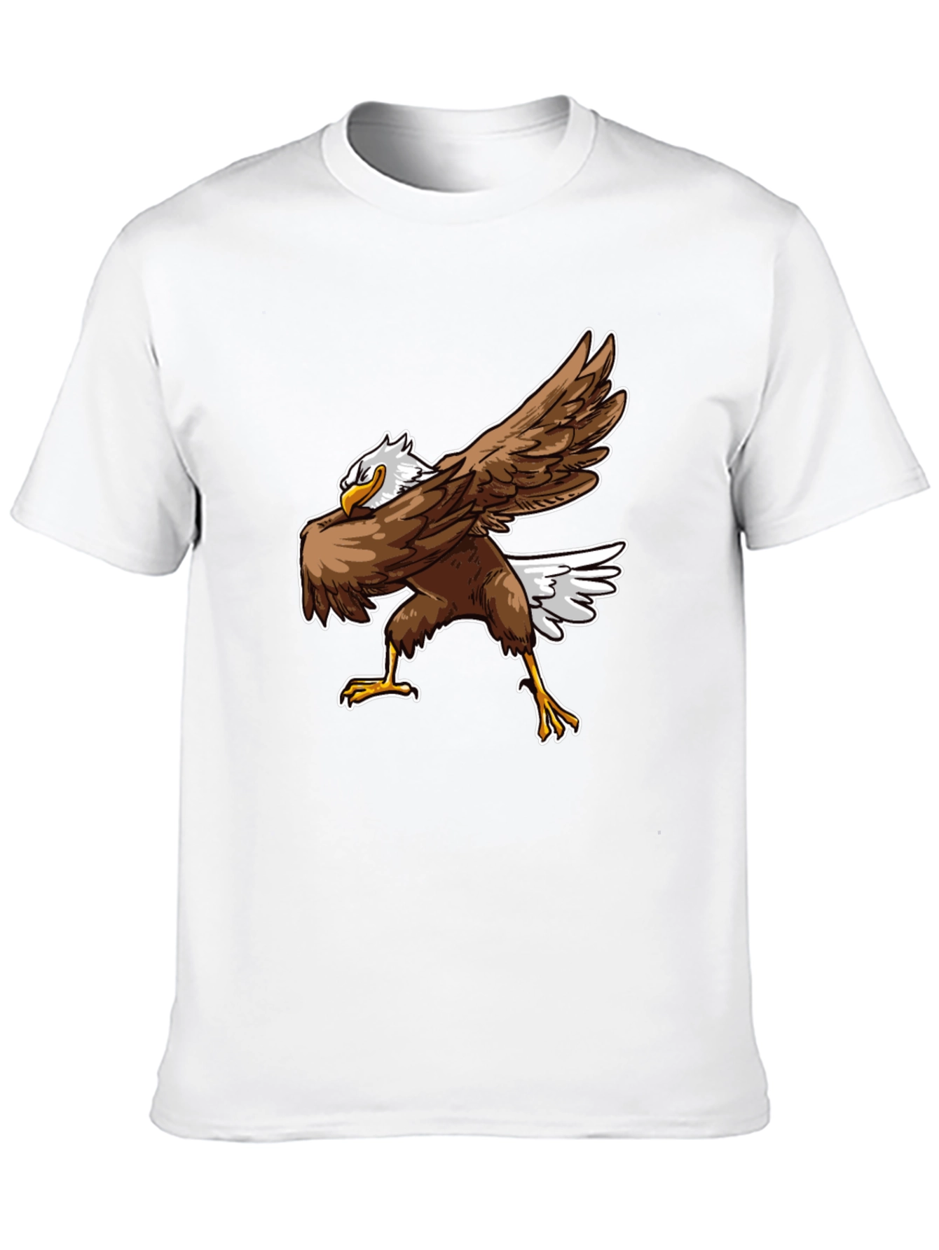 Show off your patriotic style with this unique black T-shirt featuring a dabbing eagle graphic! This eye-catching design displays a cartoon eagle in a fun, modern pose, making it a great conversation starter. Made from a soft, comfortable fabric, this tee is perfect for everyday wear. The vibrant, detailed print ensures the eagle design stands out. Ideal for casual outings, sporting events, or just lounging around, this shirt combines comfort with standout style. Express your love for eagles and contemporary humor with this must-have tee. Add it to your wardrobe for a touch of playful patriotism!
