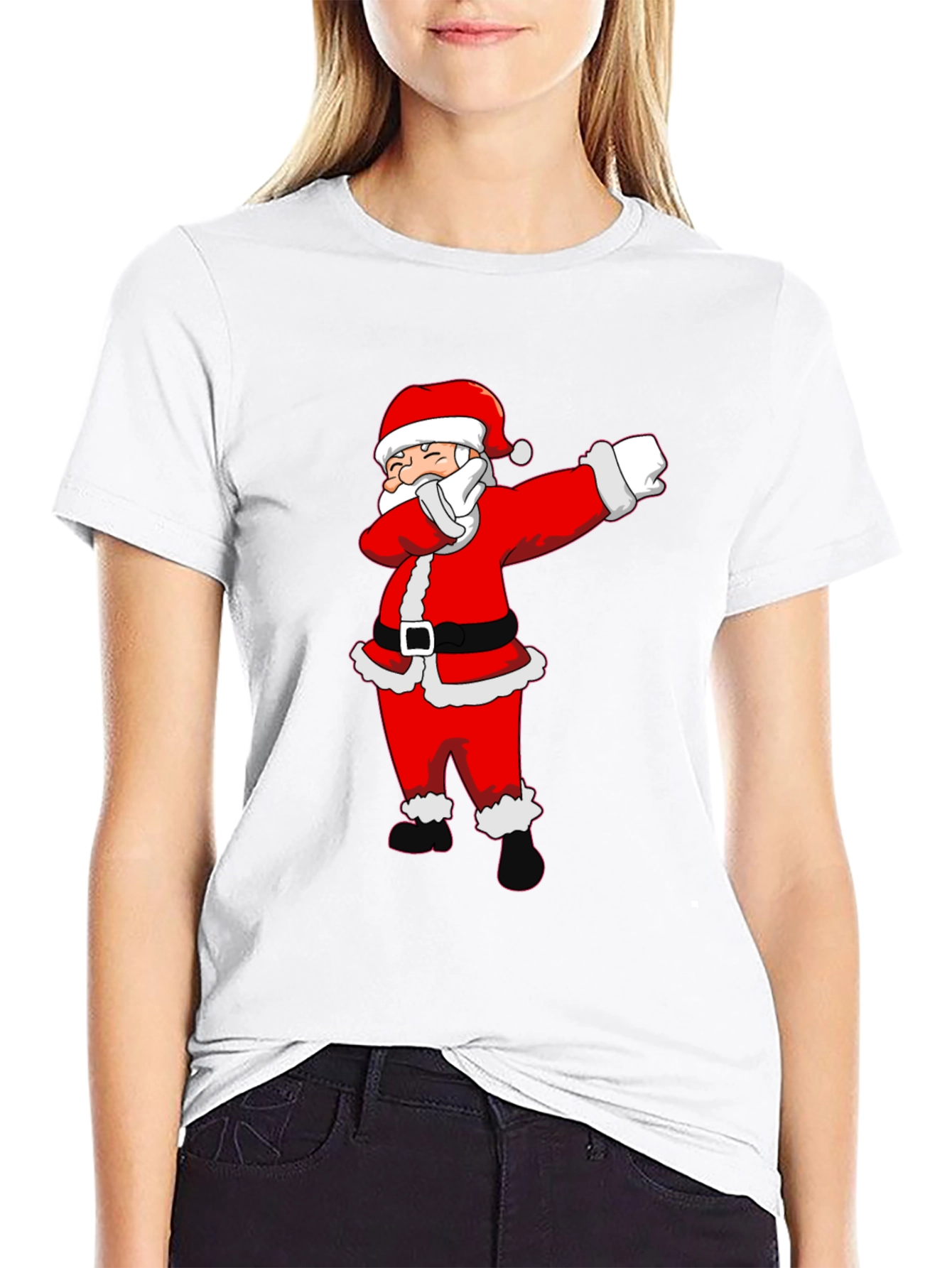 Spread holiday cheer with this eye-catching black t-shirt featuring a vibrant dabbing Santa Claus graphic. The jolly character is decked out in his classic red suit with white faux fur trim and black boots, ready to celebrate in style. Made from comfortable and breathable fabric, this tee is perfect for festive gatherings, holiday parties, or casual wear during the Christmas season. Stand out from the crowd and show off your fun-loving spirit with this unique and trendy design. It is sure to be a conversation starter and a holiday favorite. Add some festive fun to your wardrobe!