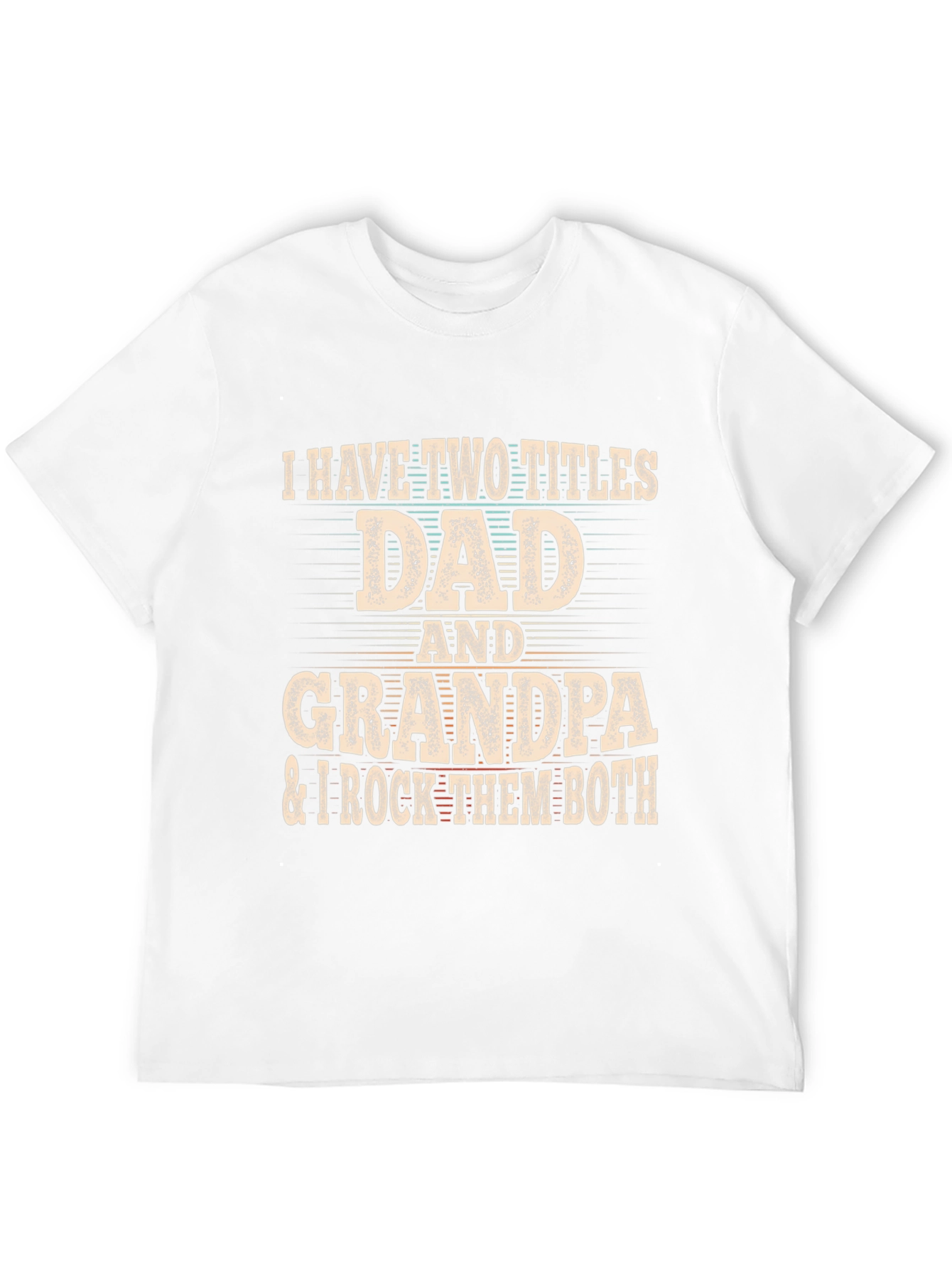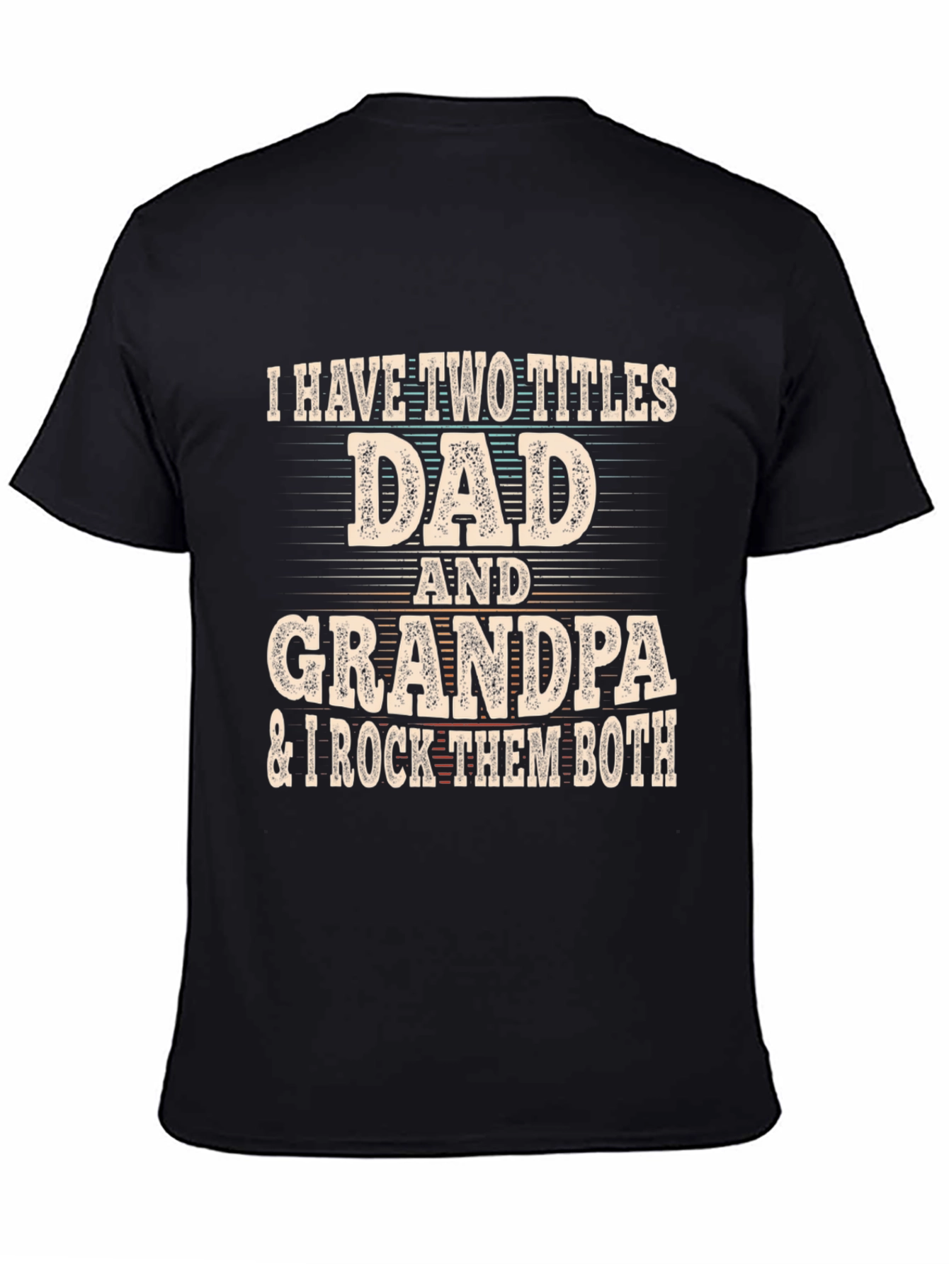 Show off your pride with this unique black t-shirt featuring the bold statement: "I HAVE TWO TITLES DAD AND GRANDPA & I ROCK THEM BOTH." The design is eye-catching and perfect for any proud father and grandfather. Made from a comfortable material, this t-shirt is great for everyday wear or special occasions. Its classic fit makes it a versatile addition to any wardrobe. Whether you're running errands or spending time with family, this t-shirt is a fun and stylish way to celebrate your roles as a dad and grandpa. Perfect as a gift!