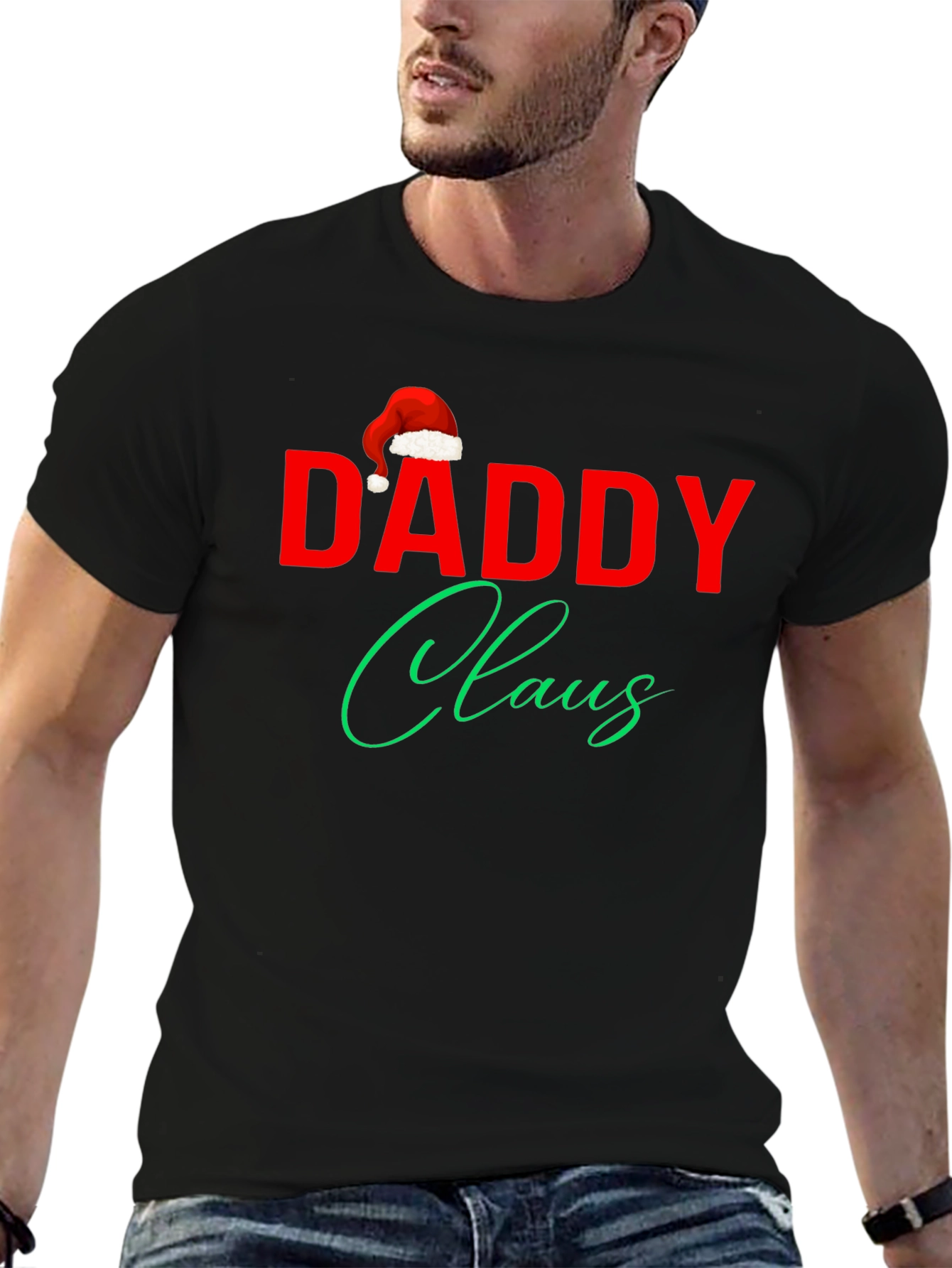 Spread holiday cheer with this "Daddy Claus" themed t-shirt. Made from a comfortable, breathable fabric, this tee features a festive design with the word "Daddy" in bold red, complemented by "Claus" in an elegant green script. A Santa hat adds a playful touch. Perfect for holiday gatherings, casual wear, or as a fun gift for the special dad in your life. Get into the holiday spirit with this unique and stylish shirt!