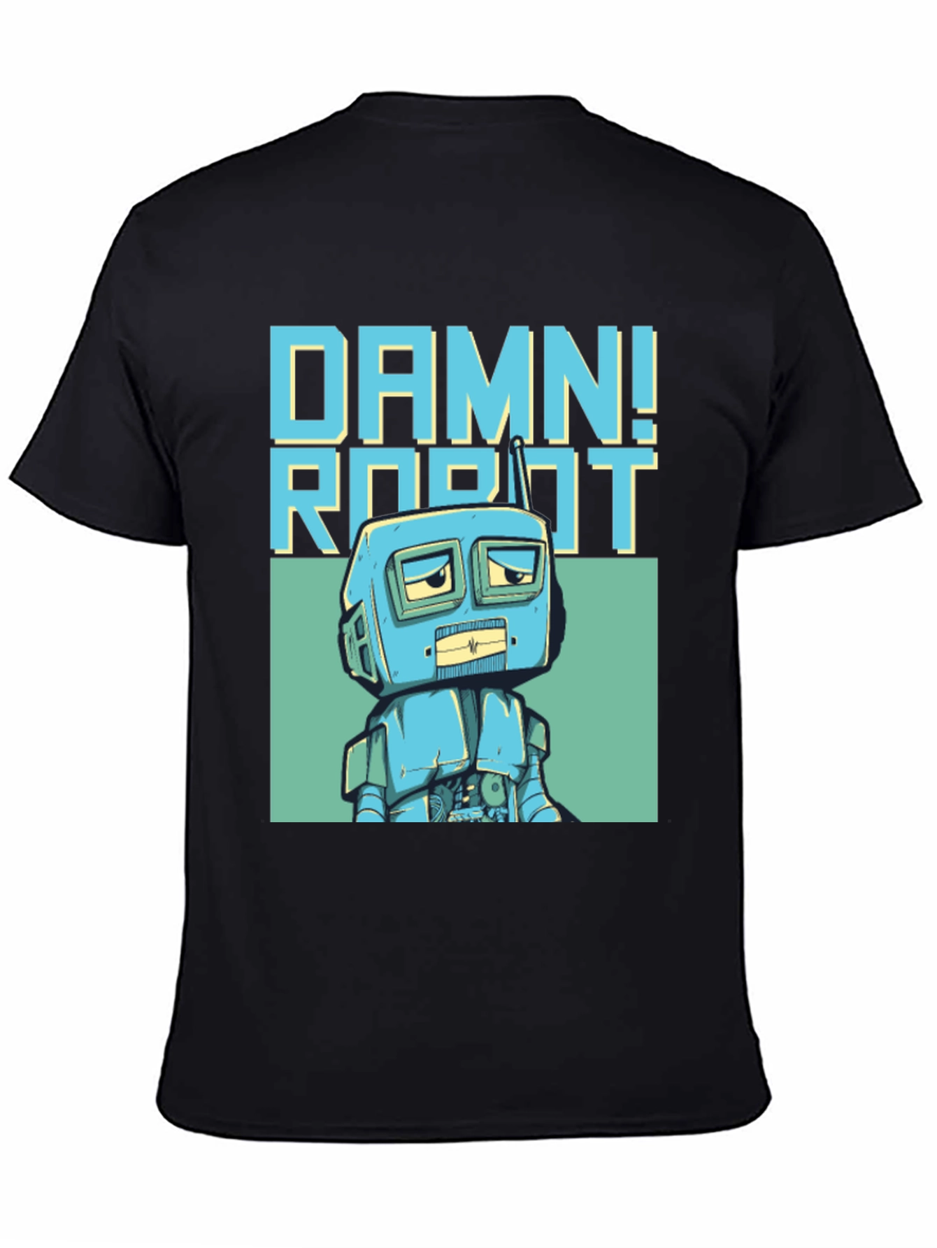 Show off your quirky side with this unique black T-shirt. Featuring a retro-style robot graphic and the words "Damn! Robot" in a cool blue font, this tee is perfect for anyone with a love for vintage designs and a sense of humor. The robot illustration is set against a soft teal backdrop, adding to the shirt's eye-catching appeal. Made from a comfortable fabric, it's ideal for casual wear, gaming sessions, or a fun night out. A great conversation starter and a must-have for robot enthusiasts!