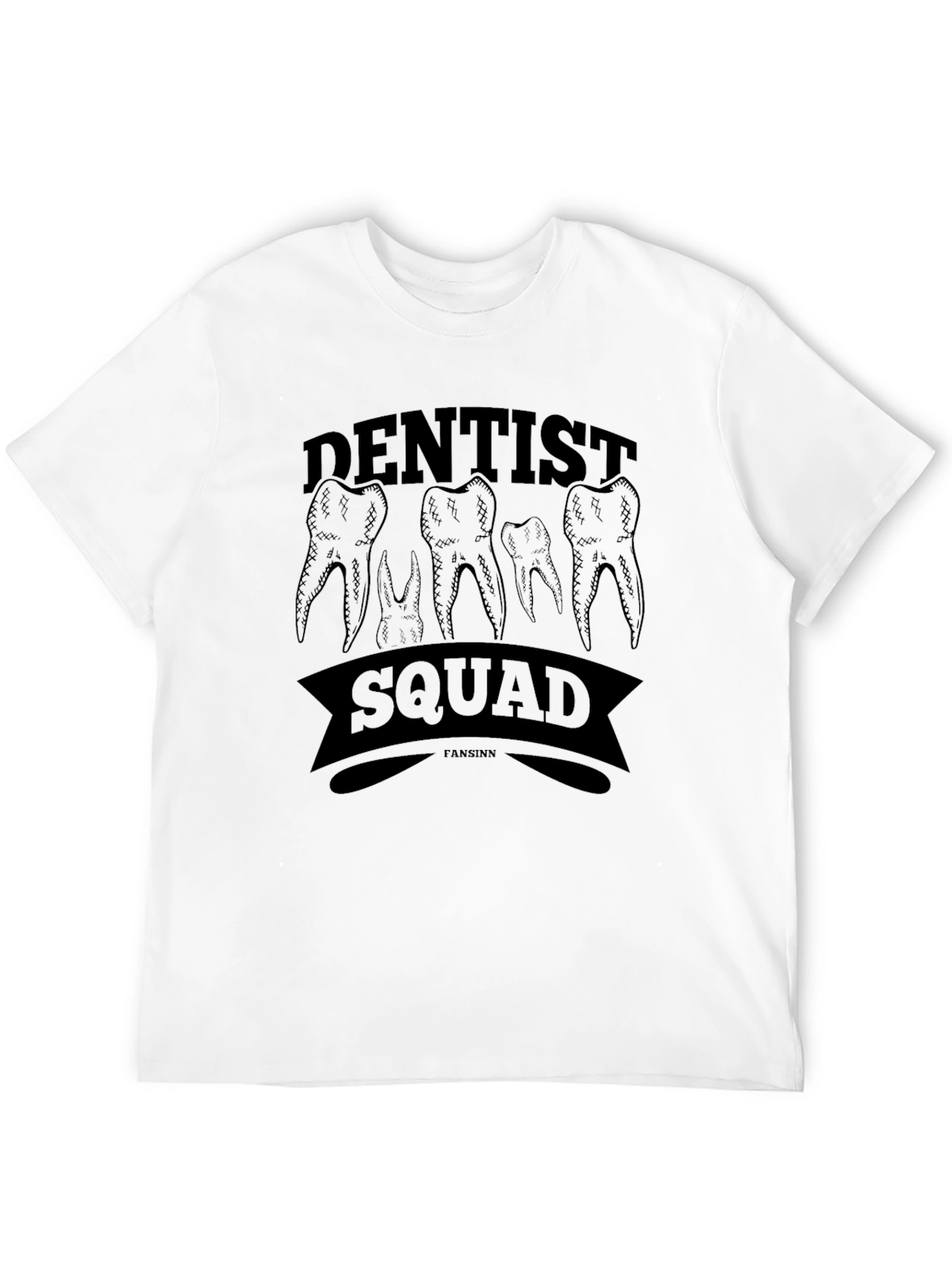 Show off your dental pride with this unique black t-shirt. Featuring a bold 'Dentist Squad' graphic with tooth illustrations, this tee is perfect for dentists, dental hygienists, and dental students. Made from soft, breathable cotton, it offers all-day comfort and style. Wear it to work, dental conferences, or casual outings to showcase your passion for oral health. This eye-catching design is sure to spark conversations and smiles. Get yours today and represent the Dentist Squad!