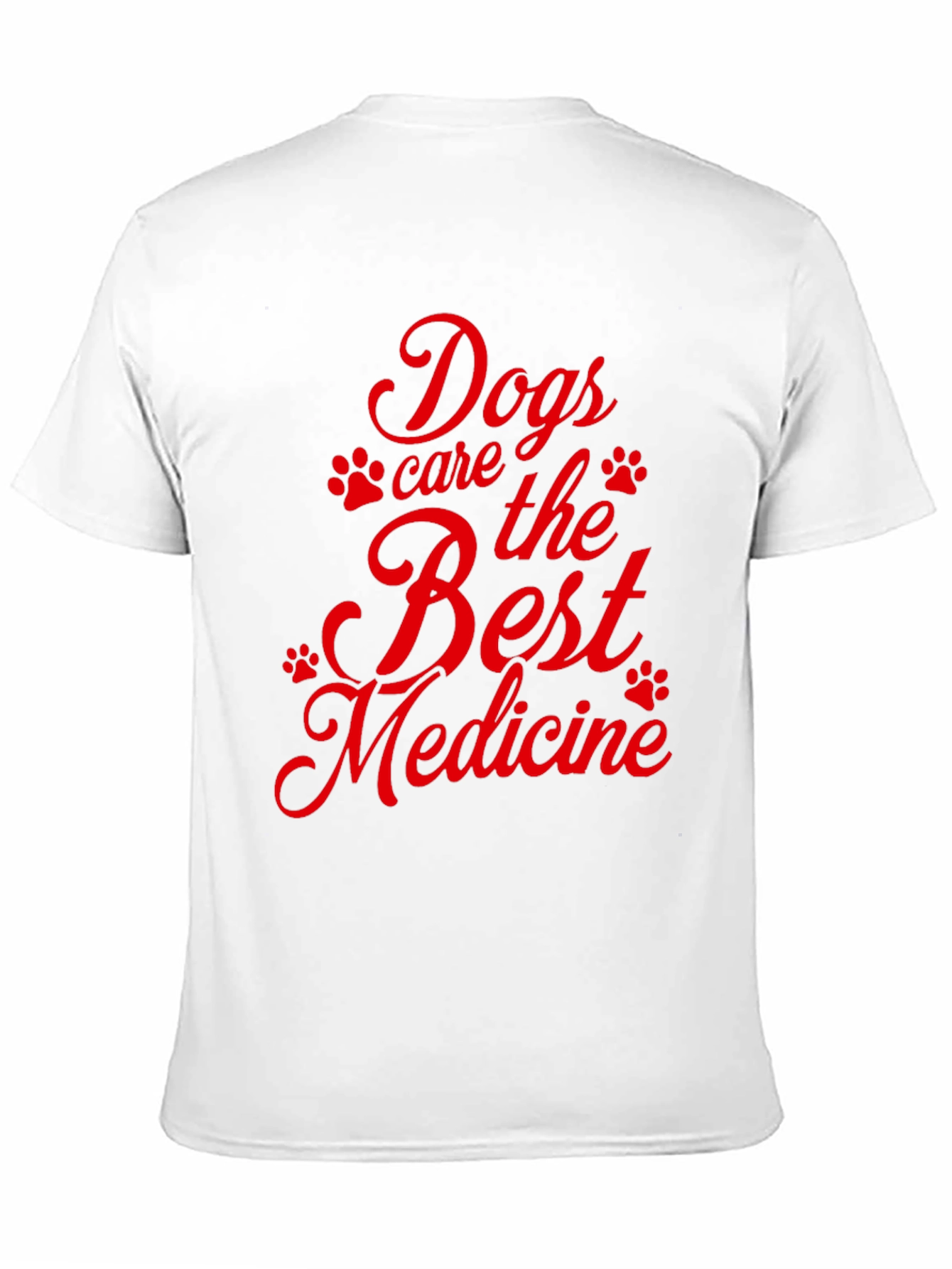 Show your love for furry friends with this stylish black t-shirt. Featuring a playful red graphic that reads "Dogs care the Best Medicine" with paw print accents, this tee is perfect for dog lovers. Made from a comfortable, breathable fabric, it's ideal for everyday wear. Whether you're walking your dog, running errands, or just relaxing at home, this shirt is sure to bring a smile to your face and spread some positive vibes. Get yours today and celebrate the healing power of dogs!