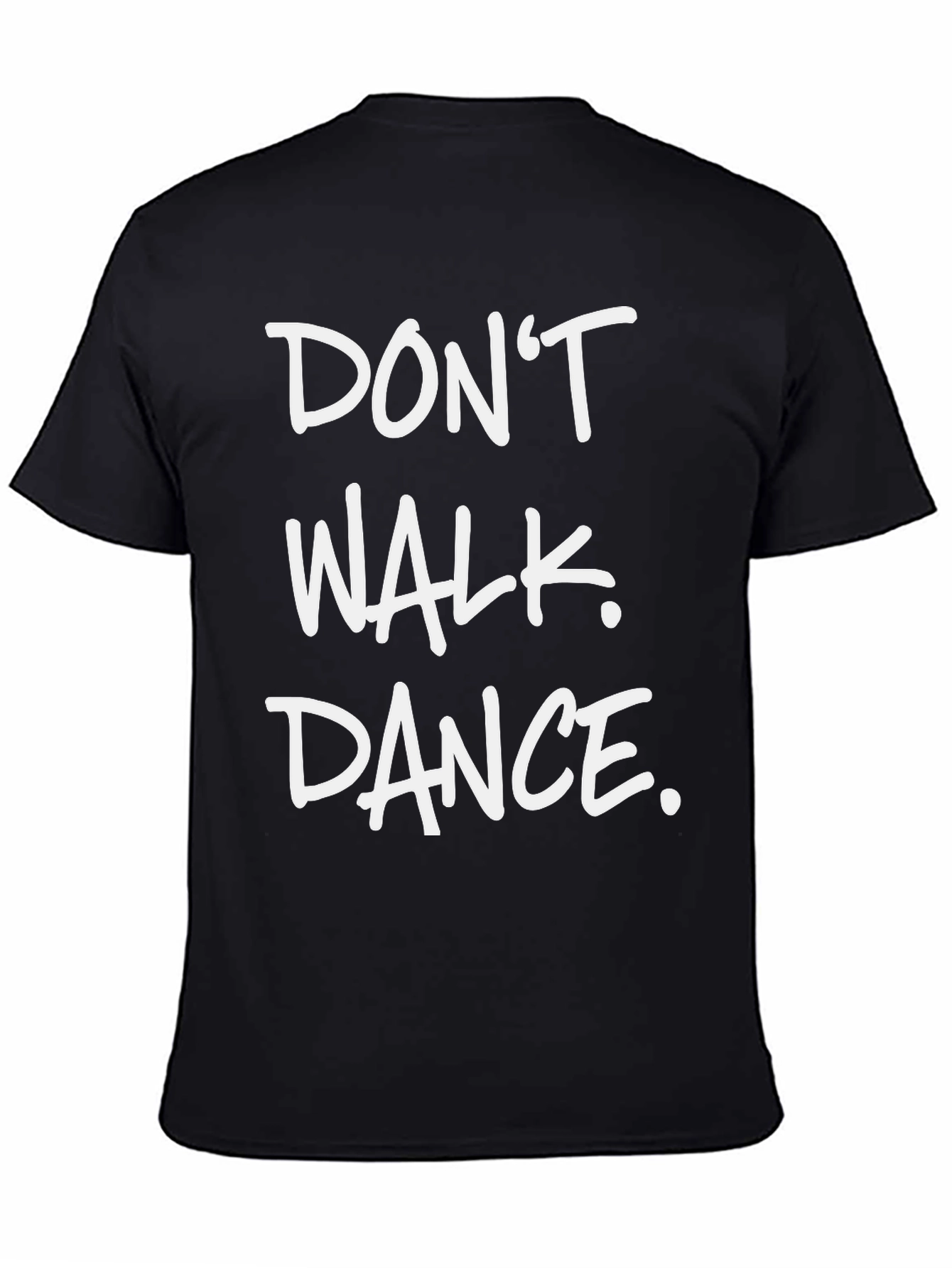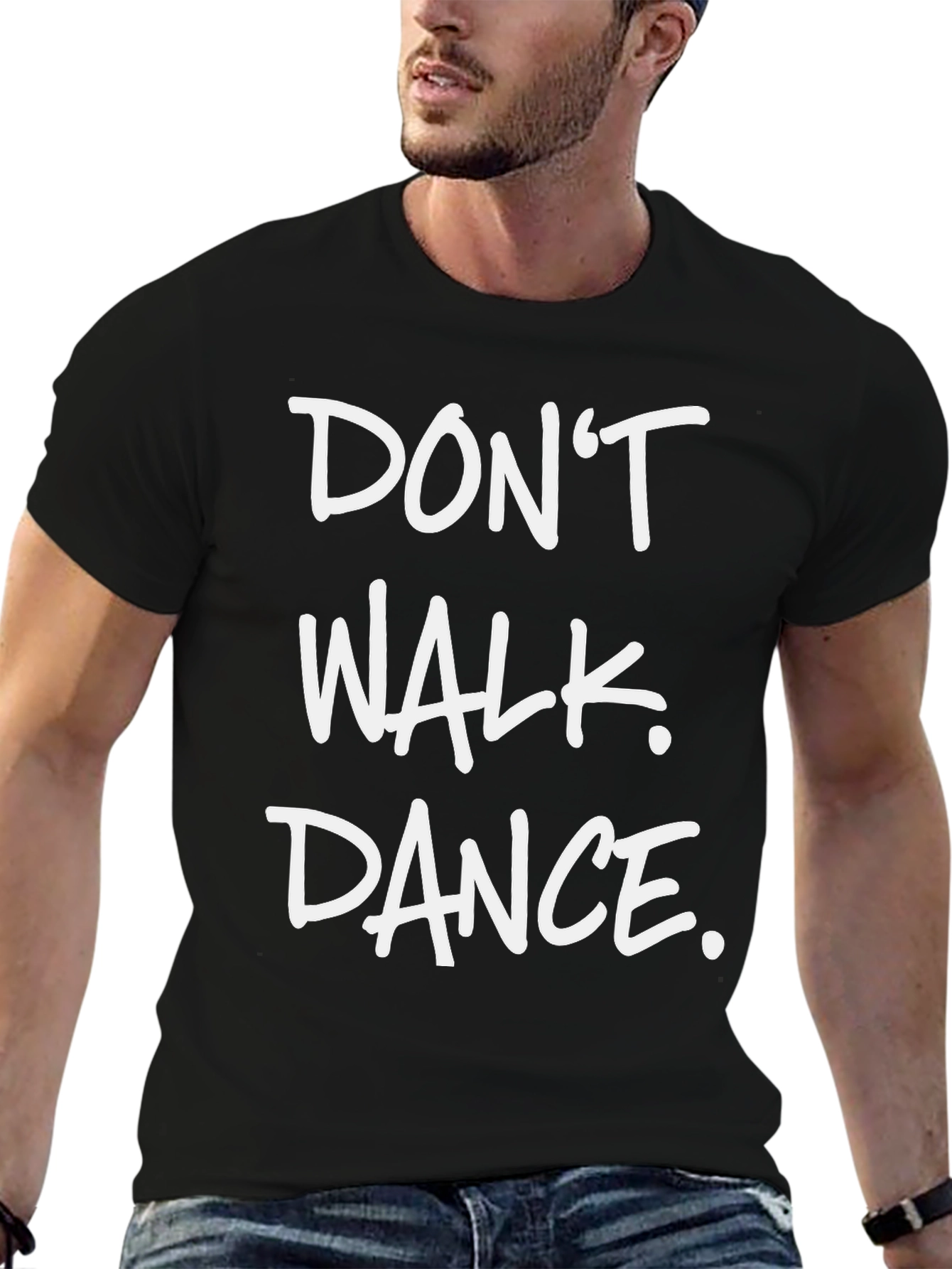Express yourself with this bold "Don't Walk. Dance." graphic tee! Crafted from a comfortable, breathable fabric, this short-sleeve shirt offers a relaxed fit and a classic crew neckline. The striking white text pops against the solid black background, making a statement wherever you go. Perfect for casual outings, dance classes, or simply adding a touch of positivity to your everyday wardrobe. Embrace the rhythm of life and spread good vibes with this stylish and inspiring t-shirt. Pair it with jeans, shorts, or your favorite dance pants for an effortlessly cool look.