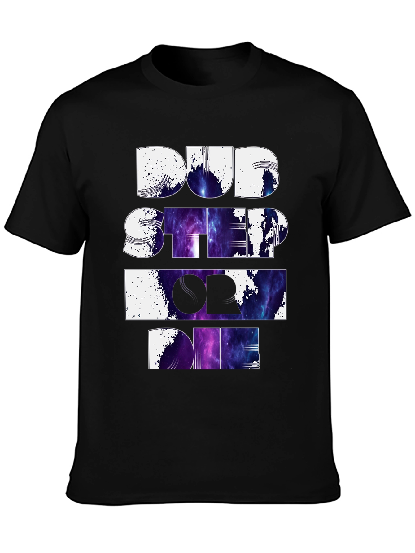 Express your love for electronic music with this eye-catching black graphic t-shirt. The tee features a stylized "Dubstep Die" design with a cool galaxy-themed fill, blending music culture with cosmic vibes. Perfect for concerts, casual outings, or just lounging around, this shirt is made from a comfortable material, ensuring both style and comfort. Show off your unique taste and make a statement with this must-have addition to your wardrobe!