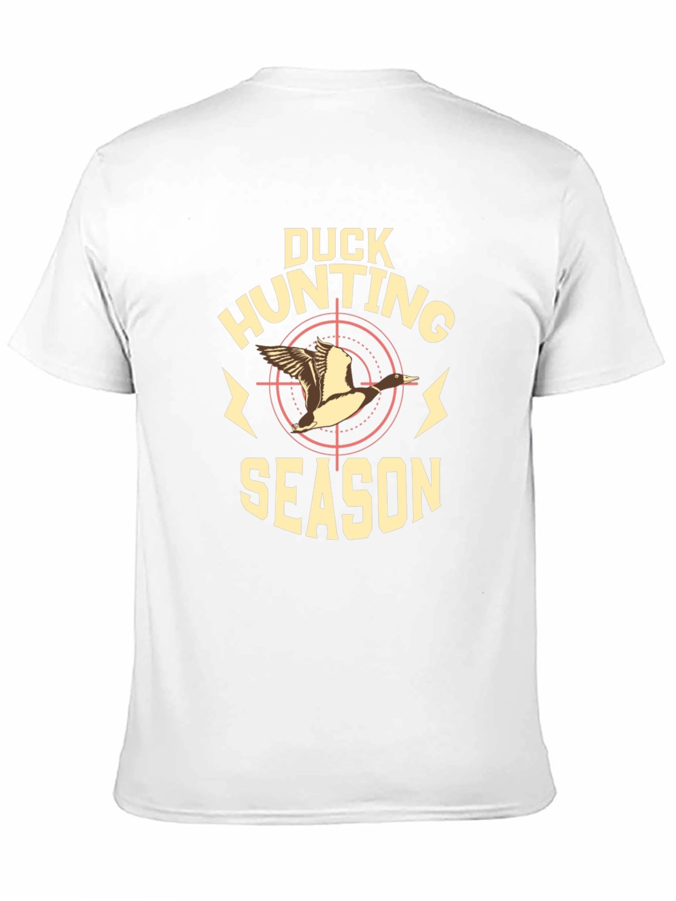 Gear up for hunting season with this eye-catching black t-shirt. The tee features a bold graphic print with "DUCK HUNTING SEASON" text and a duck target design. Made from a soft, breathable material, this shirt offers both comfort and style. The classic crew neck and short sleeves provide a relaxed fit, perfect for layering or wearing on its own. Show off your passion for the sport with this distinctive tee, ideal for hunters and outdoor enthusiasts alike.
