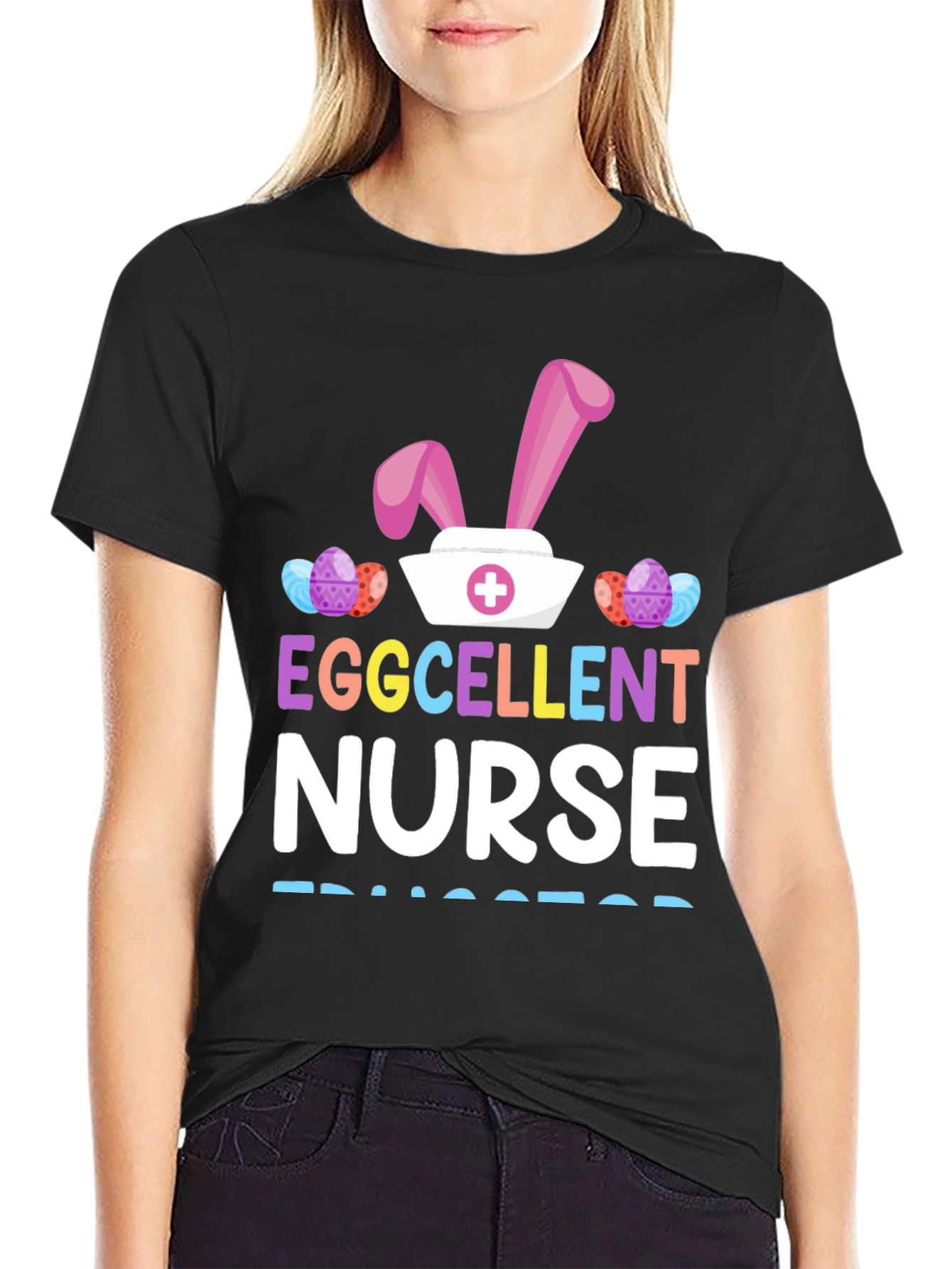 Celebrate Easter with this fun and festive "Eggcellent Nurse" t-shirt! This black tee features a playful design with Easter eggs, bunny ears on a nurse's cap, and colorful lettering. Made from a soft and comfortable fabric, this shirt is perfect for nurses who want to show their Easter spirit. Wear it to work, Easter gatherings, or any casual occasion. The unique design is sure to bring smiles and spread holiday cheer.