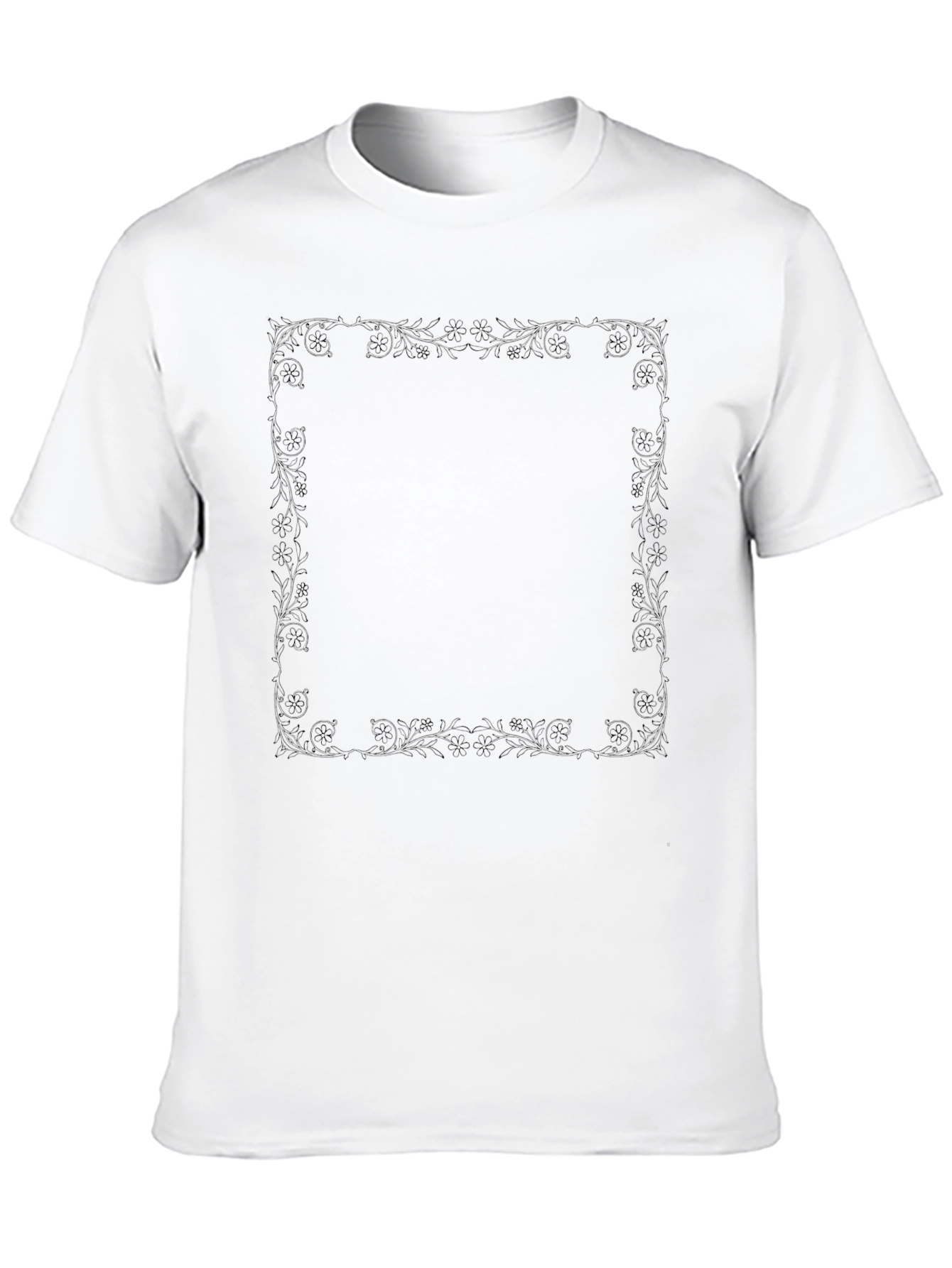 This stylish black t-shirt features a unique, subtle floral border print design, offering a touch of elegance to a classic wardrobe staple. Made from what appears to be soft, comfortable fabric, this tee is perfect for everyday wear, casual outings, or layering under a jacket. The dark color provides a slimming effect and enhances the visibility of the delicate floral pattern. Pair it with jeans, chinos, or a skirt for a versatile and fashionable look. The timeless design makes it a great addition to any closet, and its comfortable fit ensures you'll want to wear it again and again. Upgrade your style with this understated yet sophisticated piece.