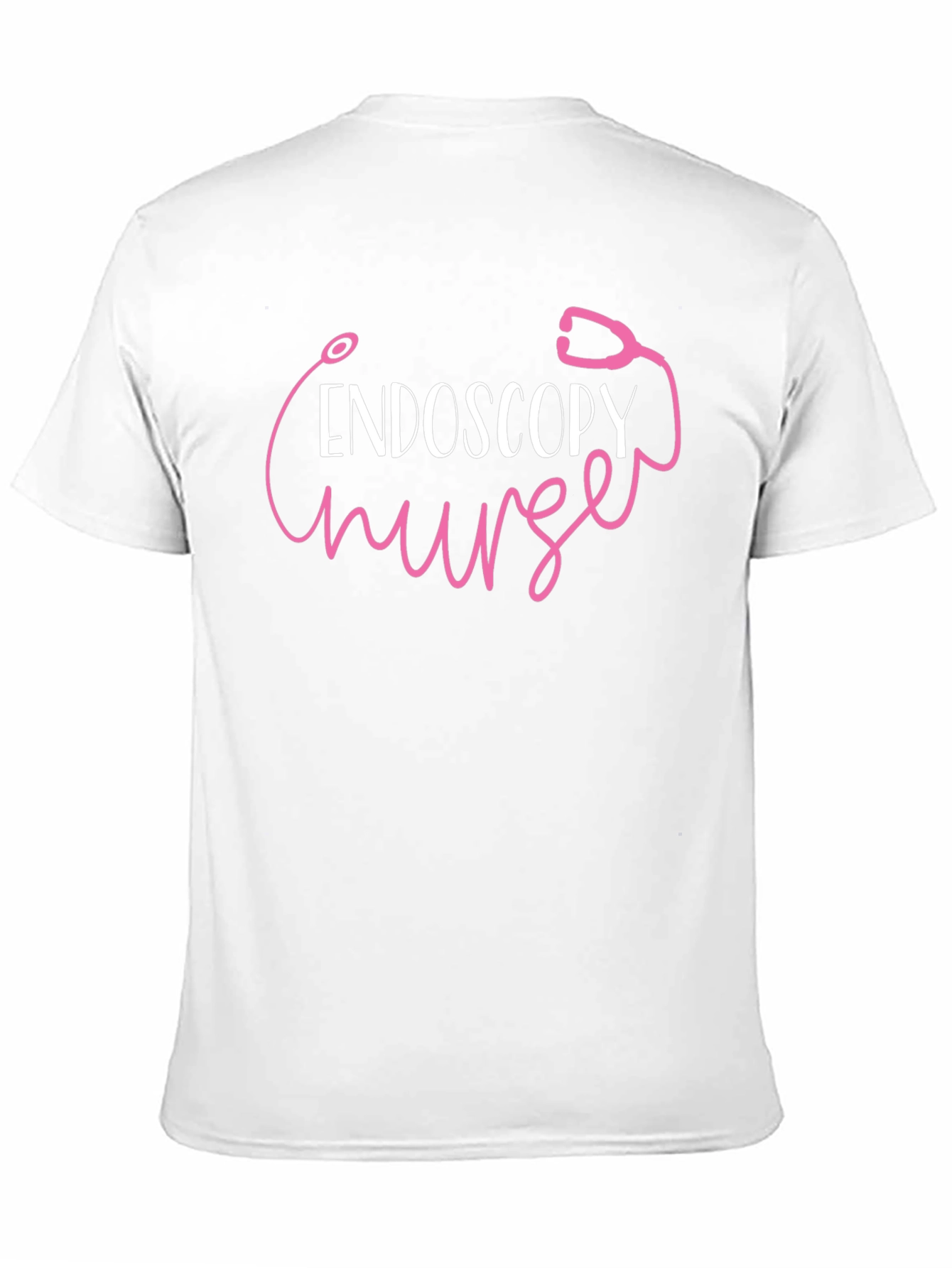 This black t-shirt features a unique design that's perfect for endoscopy nurses. The eye-catching graphic incorporates the words "ENDOSCOPY nurse" styled with a pink stethoscope outline, making it a stylish and profession-specific piece of apparel. Made from a comfortable material, this shirt is suitable for everyday wear, whether at work or casually. The design is bold and distinctive, allowing nurses to show pride in their profession with a touch of flair. Its simple yet elegant design makes it a great gift for endoscopy nurses who appreciate a blend of comfort and style in their wardrobe. It's a perfect way to celebrate and acknowledge the vital role they play in healthcare.