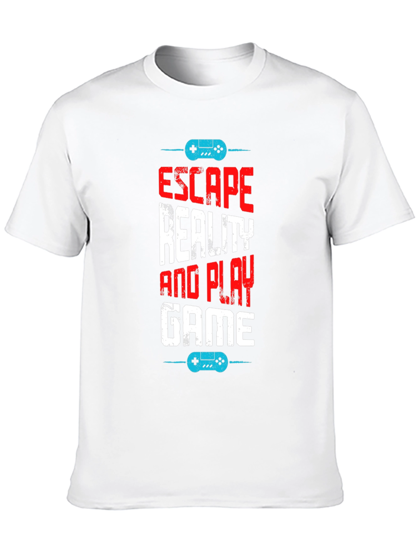 Level up your wardrobe with this fun and stylish black t-shirt. Featuring the phrase "Escape Reality and Play Game" in a bold, distressed font. Accented with retro game controller graphics, this tee is perfect for gamers and casual wearers alike. The design's mix of red and white text adds a pop of color to the classic black background, ensuring you stand out from the crowd. Made from a soft, breathable fabric, it offers all-day comfort. Ideal for gaming sessions, conventions, or everyday adventures, this shirt is a must-have for anyone who loves video games.