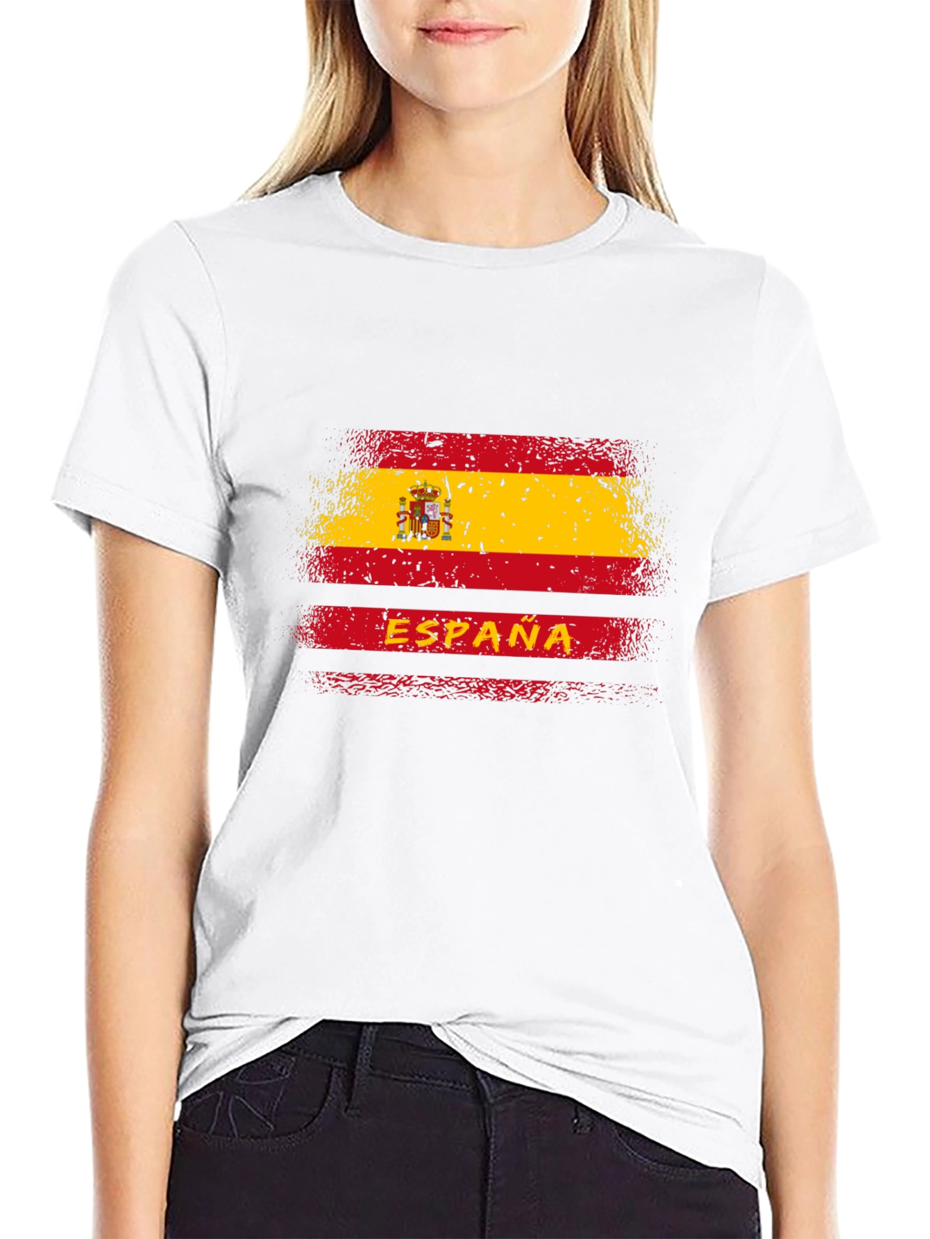 Show your Spanish pride with this stylish black t-shirt featuring a distressed Spanish flag graphic. The vibrant red and yellow of the flag stand out against the black backdrop, creating a bold and eye-catching design. The word "ESPAÑA" is prominently displayed, adding to the shirt's patriotic appeal. Made from a comfortable material, this tee is perfect for casual wear, sporting events, or celebrating Spanish culture. The distressed effect gives the flag a vintage look, adding character and a unique touch. A great way to express your love for Spain in style! The perfect gift for any Spain enthusiasts!