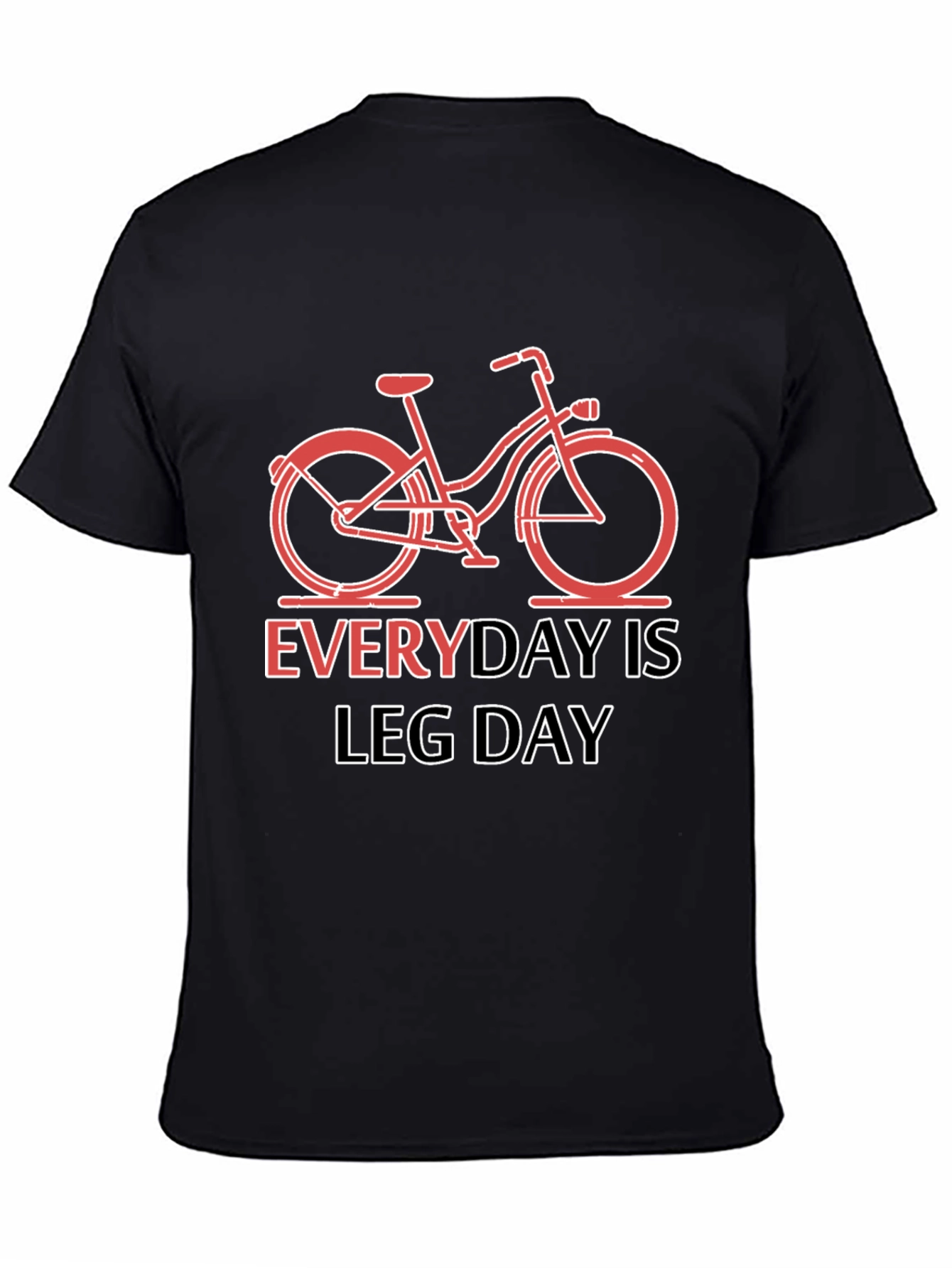 Show off your passion with this trendy graphic t-shirt. Featuring a classic bike design and the slogan "Everyday Is Leg Day", this tee is perfect for cycling enthusiasts and fitness lovers. The t-shirt is crafted from a comfortable, breathable fabric, likely cotton or a cotton blend, offering a relaxed fit for all-day wear. The design is printed on a solid black background, creating a bold contrast that is sure to catch eyes. Wear it to the gym, on a casual ride, or simply as a statement piece in your everyday wardrobe.
