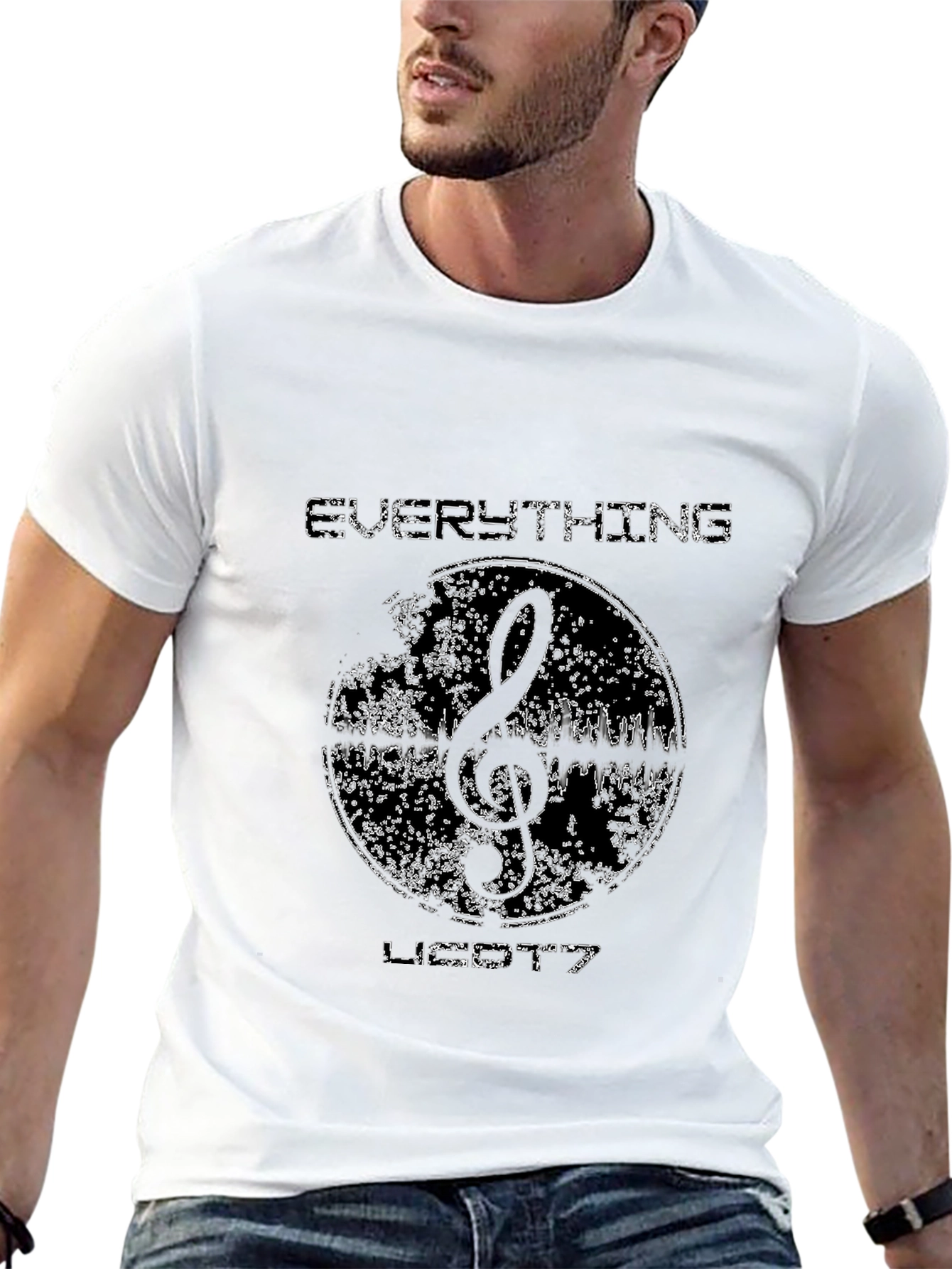 Showcase your love for music with this unique black t-shirt. The design features an abstract circular graphic with a treble clef and a sound wave. The phrase "Everything Is Connected" adds a touch of modern philosophy. Made from comfortable fabric, this shirt is perfect for everyday wear, music events, or as a thoughtful gift for music lovers. Make a statement with this stylish and expressive tee.