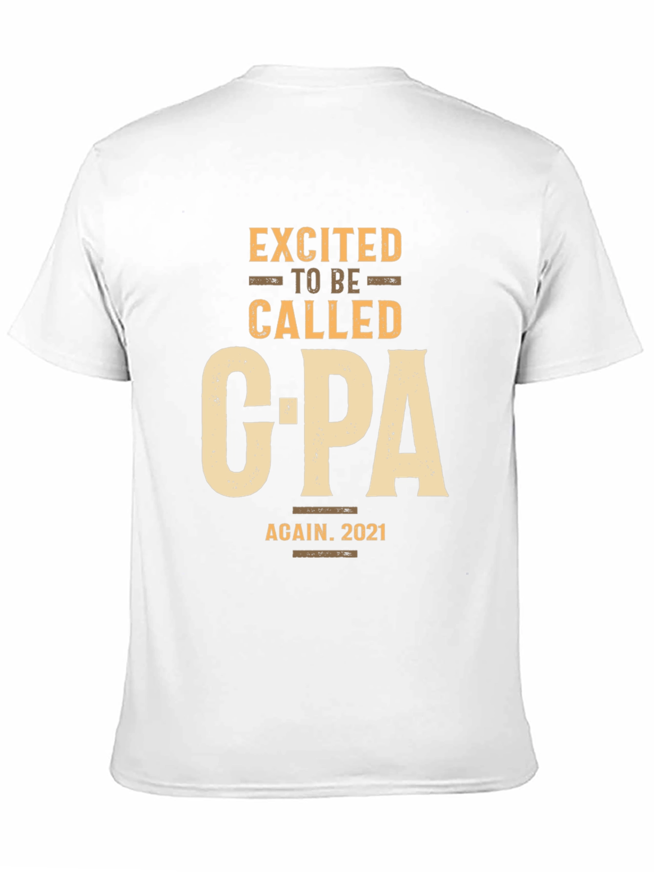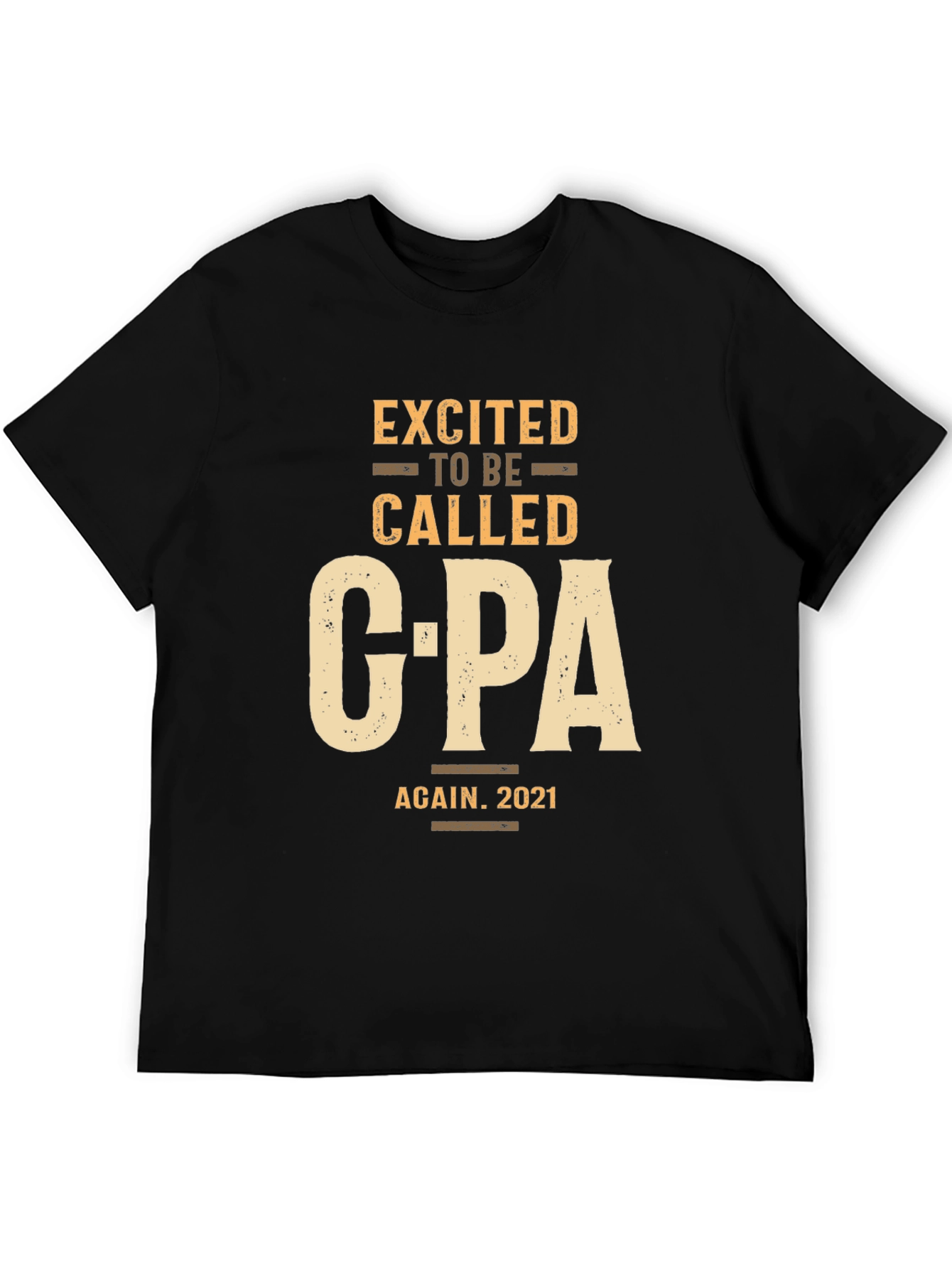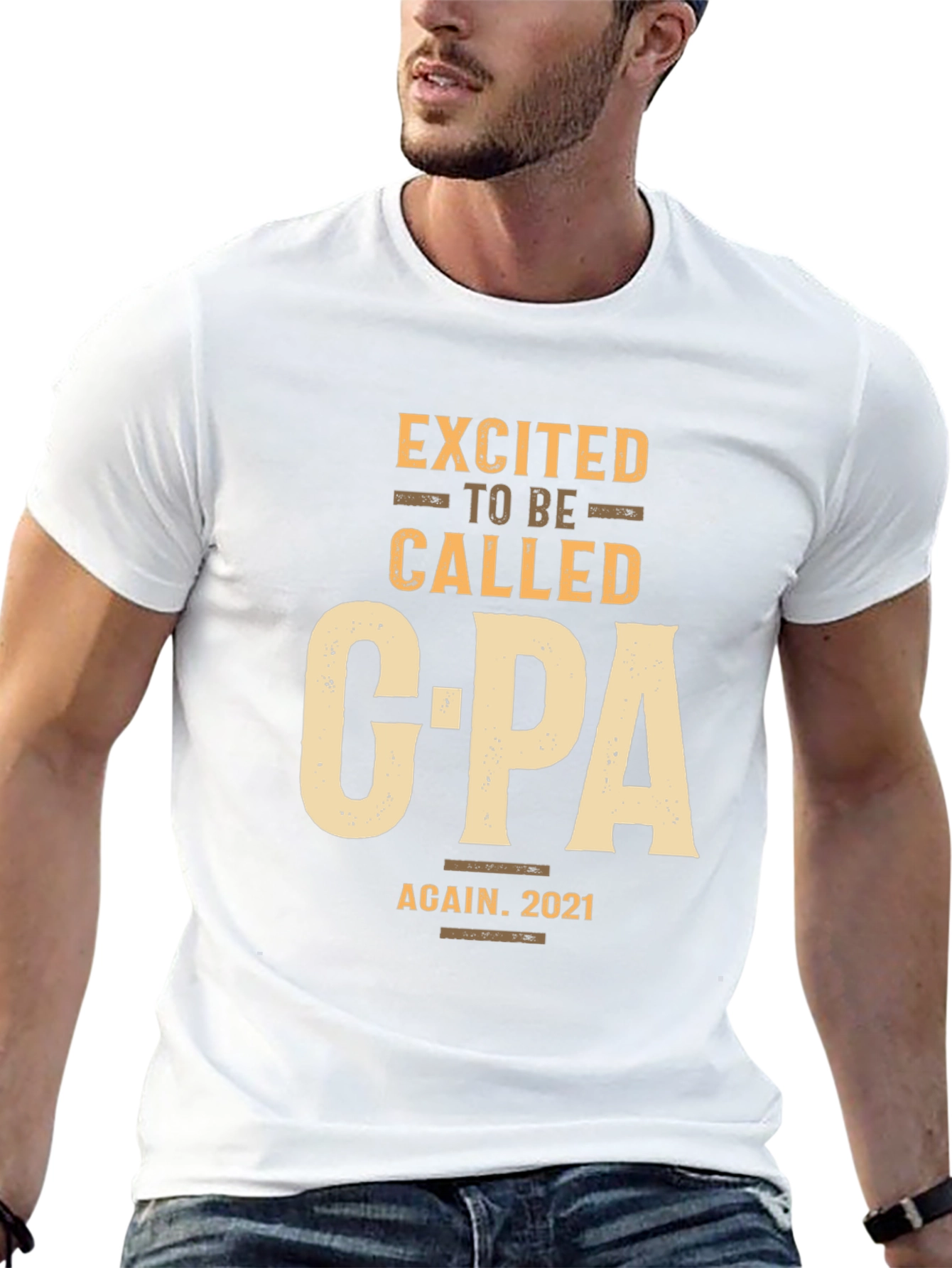 This black t-shirt proudly displays the phrase "Excited to be Called CPA Again. 2021" in a vintage-style, tan-colored font. The lettering is bold and eye-catching, making it a great conversation starter. The shirt looks soft and comfortable. Wear this tee to work, casual events, or even just lounging at home! It's sure to be a hit with anyone who's proud of their CPA status. It would make a thoughtful gift for that favorite Certified Public Accountant in your life.