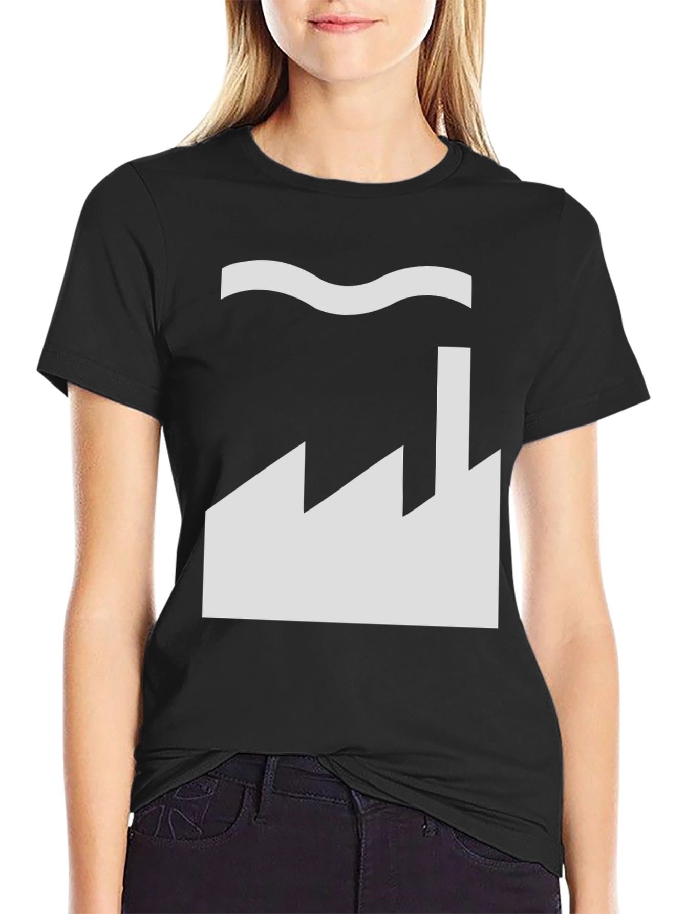 Show your industrial side with this graphic tee. This black cotton t-shirt features a bold, stylized factory design in solid white on the chest. With short sleeves, a classic crew neck, and a comfortable fit, this tee is perfect for everyday wear. Pair it with jeans or shorts for a casual look. Ideal for those who appreciate unique and expressive designs. Machine washable for easy care.