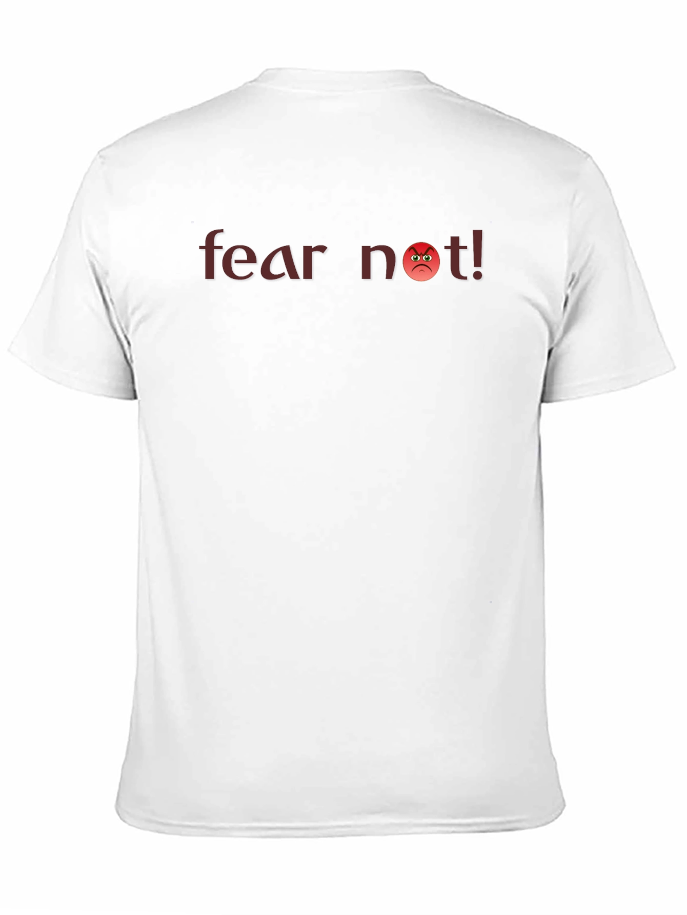 Embrace a bold statement with this eye-catching black graphic t-shirt. The design features the text "fear not!" accompanied by an angry red emoji, adding a touch of humor and defiance to your wardrobe. This comfortable and stylish shirt is perfect for casual wear, expressing individuality, and making a statement without saying a word. Made from a soft, breathable fabric, it ensures all-day comfort. Ideal for everyday wear, social gatherings, or as a unique gift for someone with a strong personality. Stand out from the crowd and let your t-shirt do the talking!