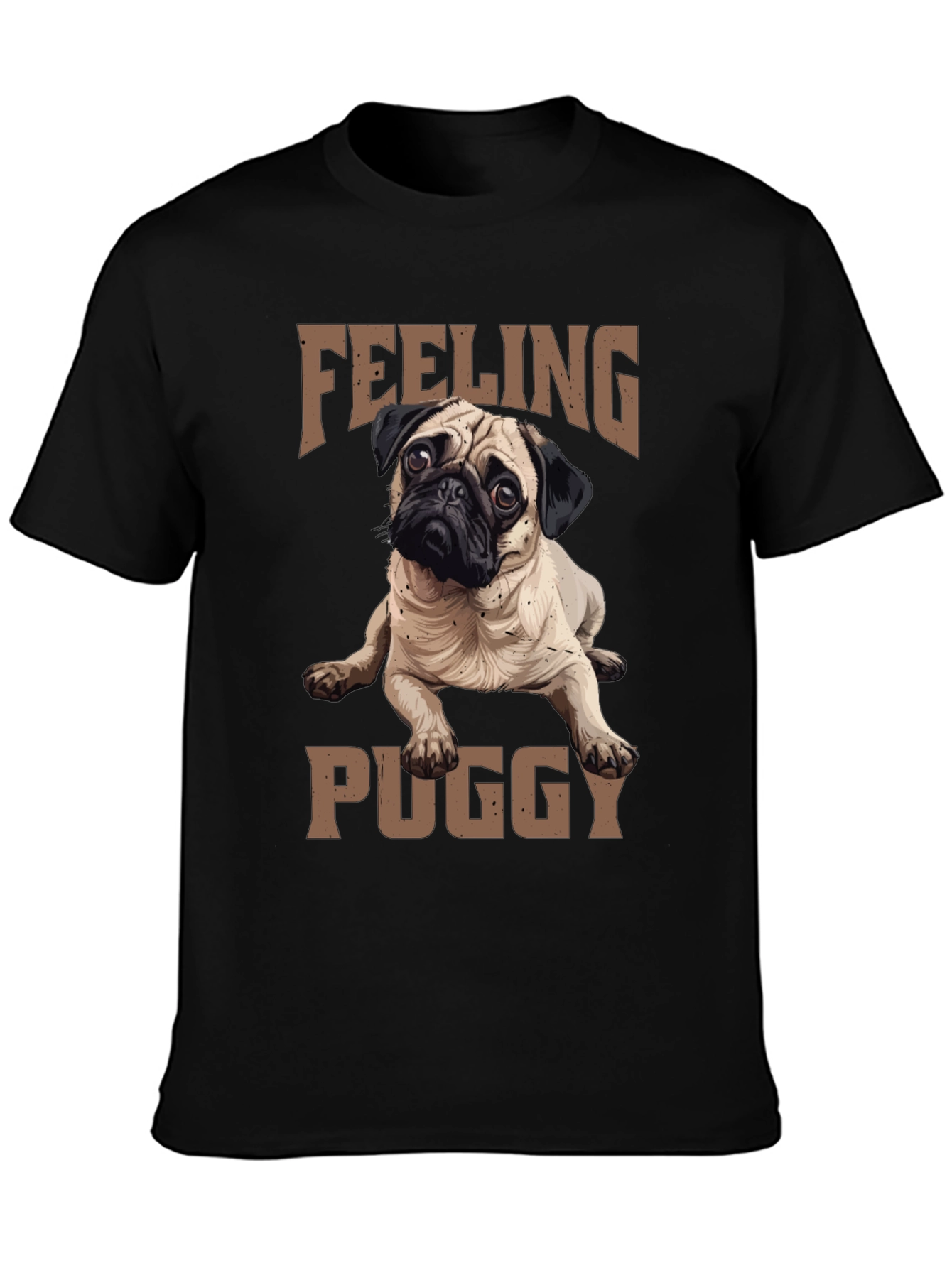 Show off your love for pugs with this eye-catching "Feeling Puggy" T-shirt! This stylish black tee features a high-quality graphic of an adorable pug, accompanied by the playful text "Feeling Puggy" in a cool, vintage-inspired font. Made from a comfortable and breathable fabric, this shirt is perfect for everyday wear, dog walks, or casual outings. A great conversation starter and a must-have for pug owners and dog lovers alike. The vibrant graphic is sure to turn heads and bring a smile to everyone's face. Express your fun-loving personality and pug obsession with this unique and trendy T-shirt. Get yours today and wear your heart on your sleeve!