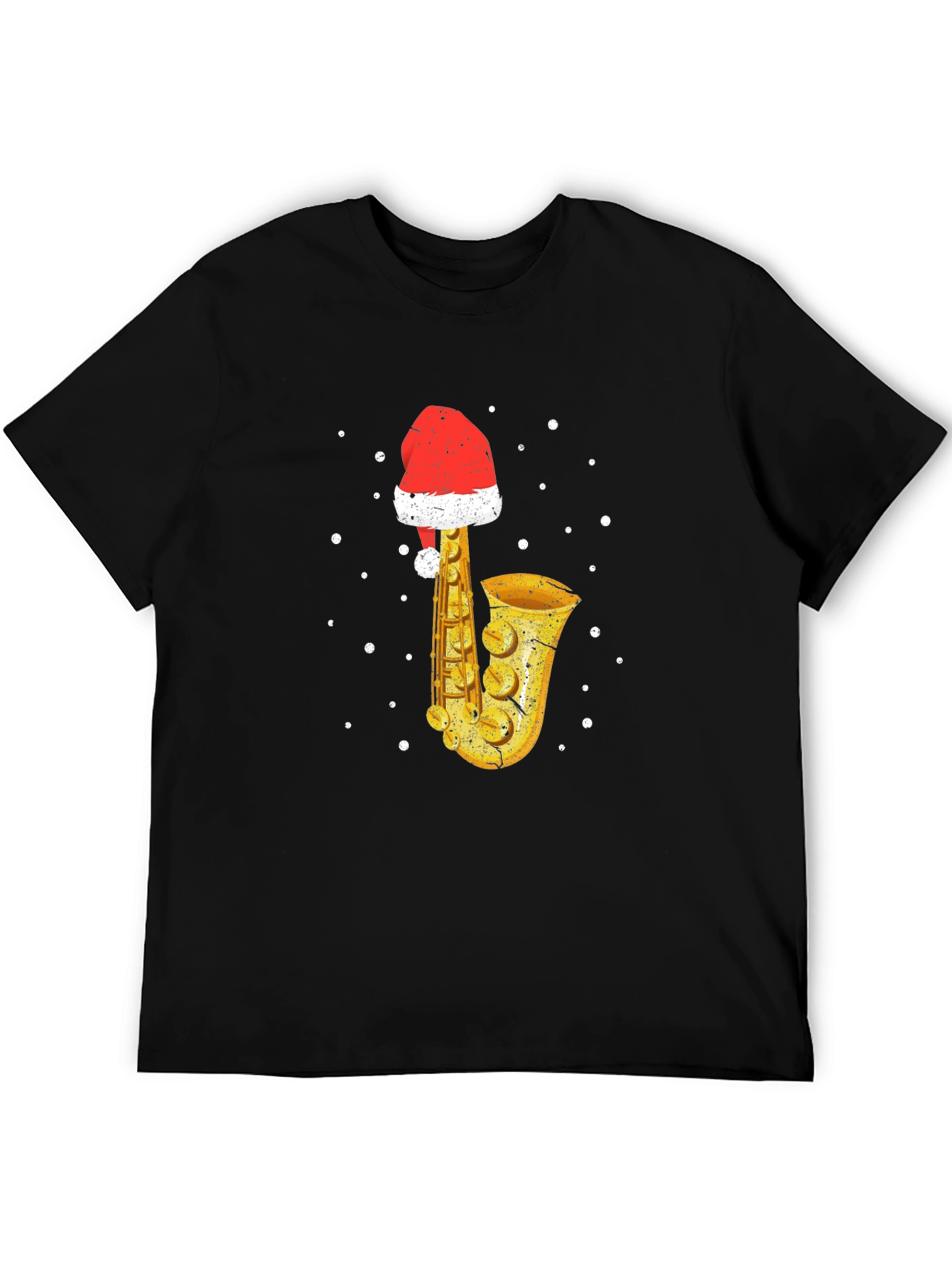 Celebrate the holidays in style with this unique t-shirt! The design features a golden saxophone playfully adorned with a red and white Santa hat, creating a festive and musical vibe. The graphic is surrounded by a scattering of white snowflakes, enhancing the Christmas spirit. This shirt is perfect for music lovers and anyone who enjoys spreading holiday cheer. Wear it to Christmas parties, concerts, or as a fun everyday statement during the festive season. Made with comfortable, breathable fabric, it’s sure to be a favorite in your winter wardrobe. Get yours today and let the holiday melodies begin!