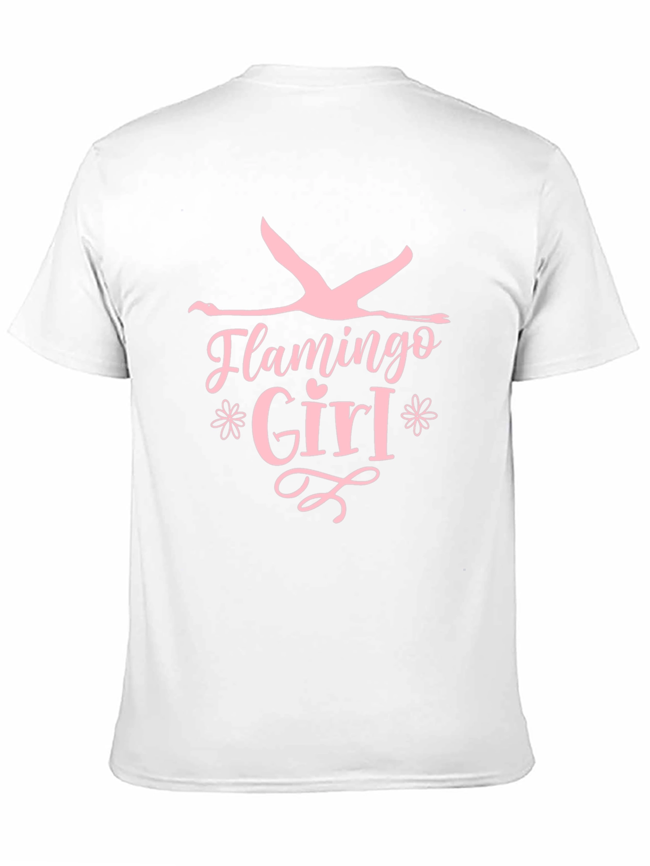 Show off your fun side with this black t-shirt featuring a pink flamingo and the words "Flamingo Girl" in a playful script. Perfect for casual wear, this tee will add a pop of color and personality to your everyday wardrobe. The shirt is made from a soft, comfortable fabric, ensuring a great fit and feel. It's ideal for lounging at home, running errands, or meeting friends for a casual outing. Embrace your love for flamingos and unique style with this eye-catching tee! Makes a great gift for flamingo lovers.