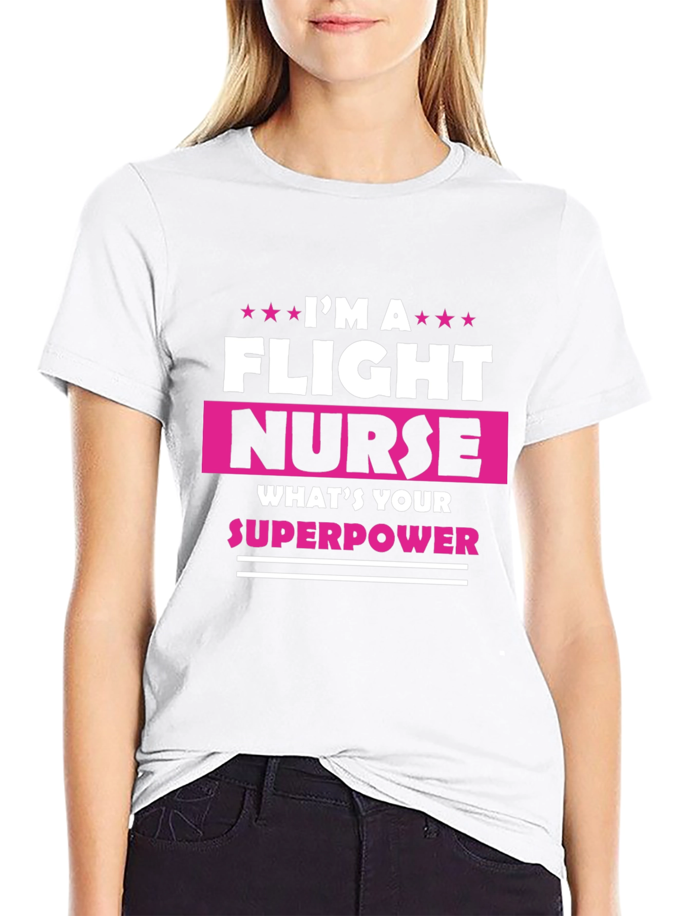 Showcase your pride with this bold black T-shirt featuring a playful "I'M A FLIGHT NURSE WHAT'S YOUR SUPERPOWER" graphic. The design incorporates a pink background accentuating the word 'NURSE' for a pop of color. Made from a comfortable, soft fabric, this tee is perfect for everyday wear. Whether you're at work, running errands, or just relaxing at home, this T-shirt is a great way to express your profession with a touch of humor. A fun conversation starter and a fantastic gift for flight nurses!