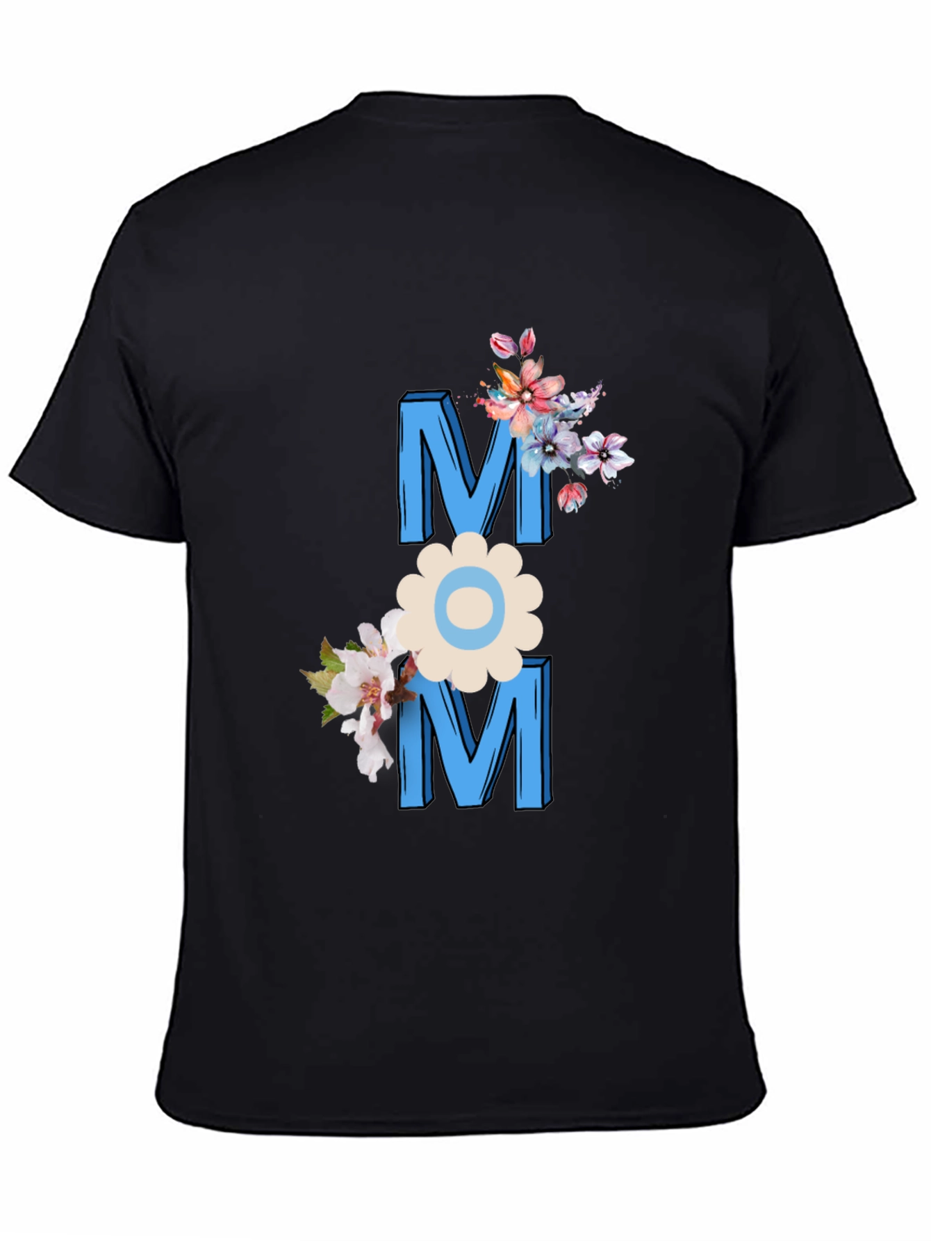 Show your love for Mom with this stylish black T-shirt! The design features the word 'MOM' in a cute, decorative font, with the letters adorned with beautiful floral accents. The 'M's are a lovely blue, and the 'O' is a white flower with a blue center. This tee is perfect for everyday wear or as a thoughtful Mother's Day gift. The soft fabric ensures comfortable wear, while the unique design makes a statement. Dress it up or down for any occasion and let everyone know how much you appreciate your mom!