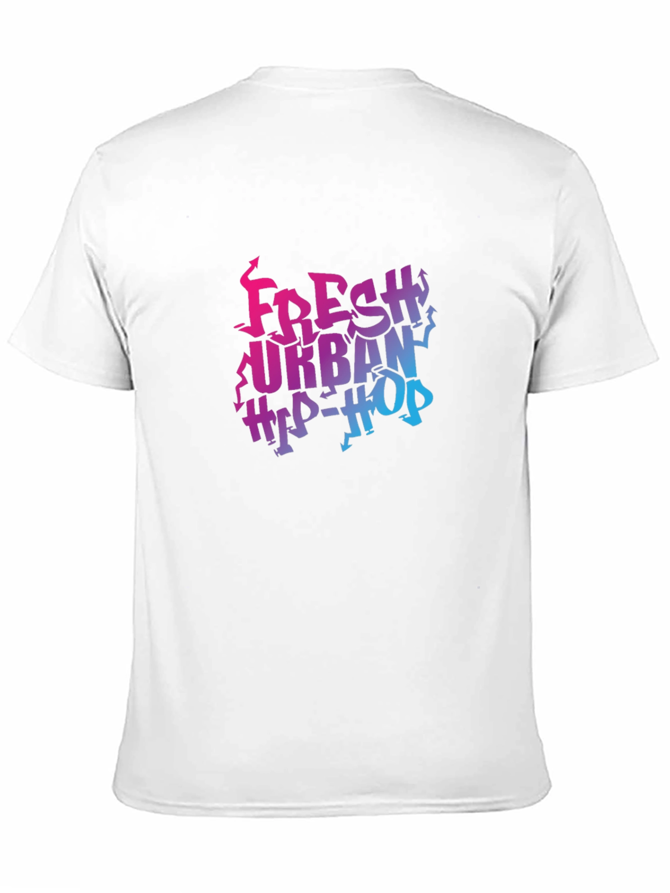 Step up your streetwear game with this bold black graphic tee. Featuring a vibrant "Fresh Urban Hip-Hop" design, this shirt is perfect for making a statement. The eye-catching gradient color scheme adds a modern touch, making it a standout piece in any wardrobe. Constructed from comfortable, breathable fabric, this tee is ideal for everyday wear. Whether you're hitting the streets, hanging out with friends, or expressing your love for hip-hop culture, this shirt is a must-have addition. Pair it with your favorite jeans or joggers for a stylish, casual look.