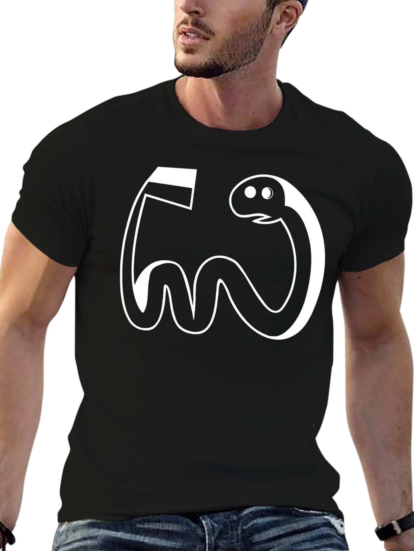 Stand out with this unique black t-shirt featuring a whimsical cartoon snake design. Made from comfortable, breathable cotton, this tee is perfect for casual wear. The playful snake graphic adds a touch of humor and individuality to your style. This tee has a crew neck and is short sleeved. Whether you're hanging out with friends or running errands, this eye-catching t-shirt is sure to turn heads and spark conversation. It is a great addition to any casual wardrobe. Show off your quirky side with this fun and stylish tee!