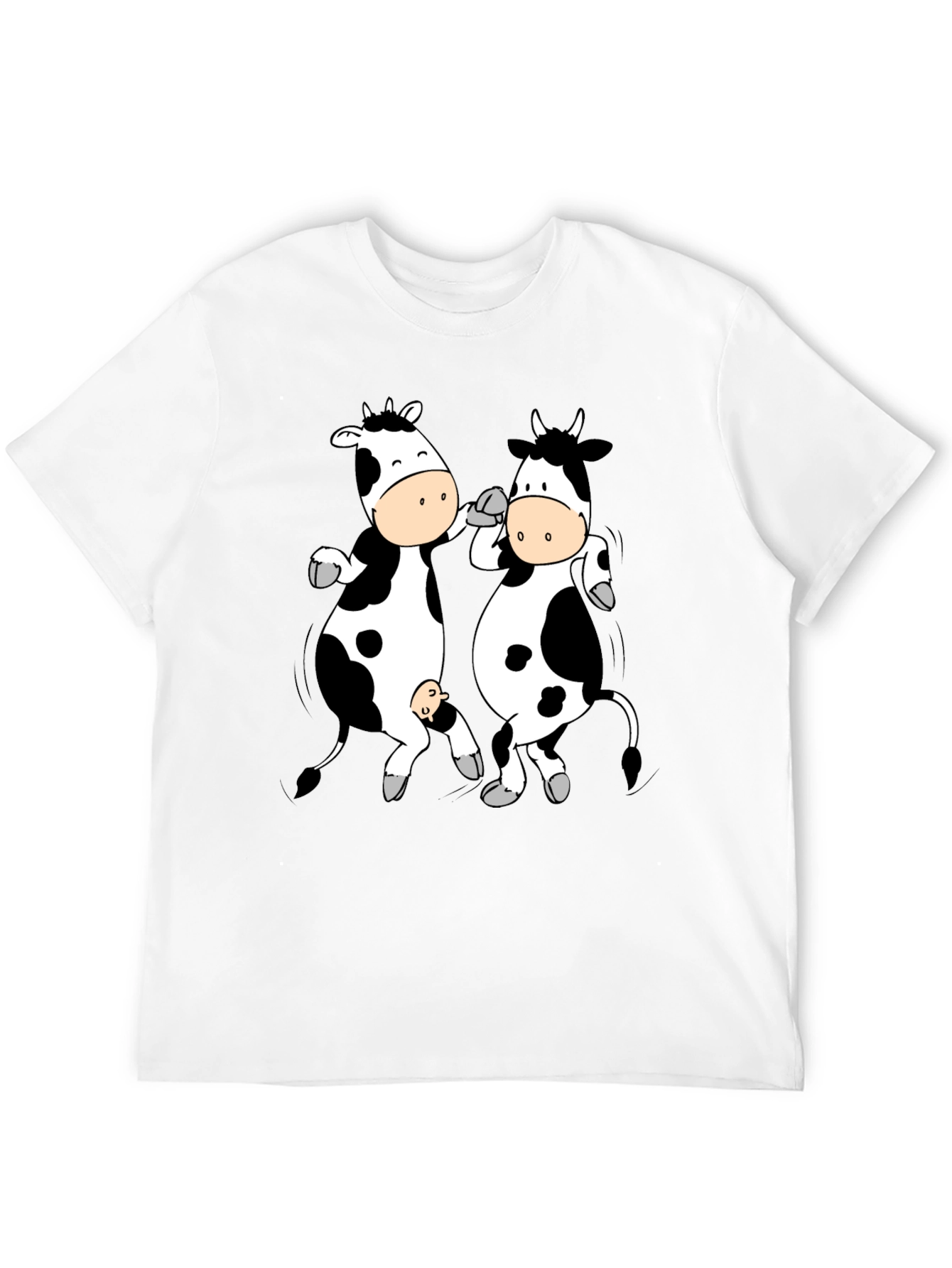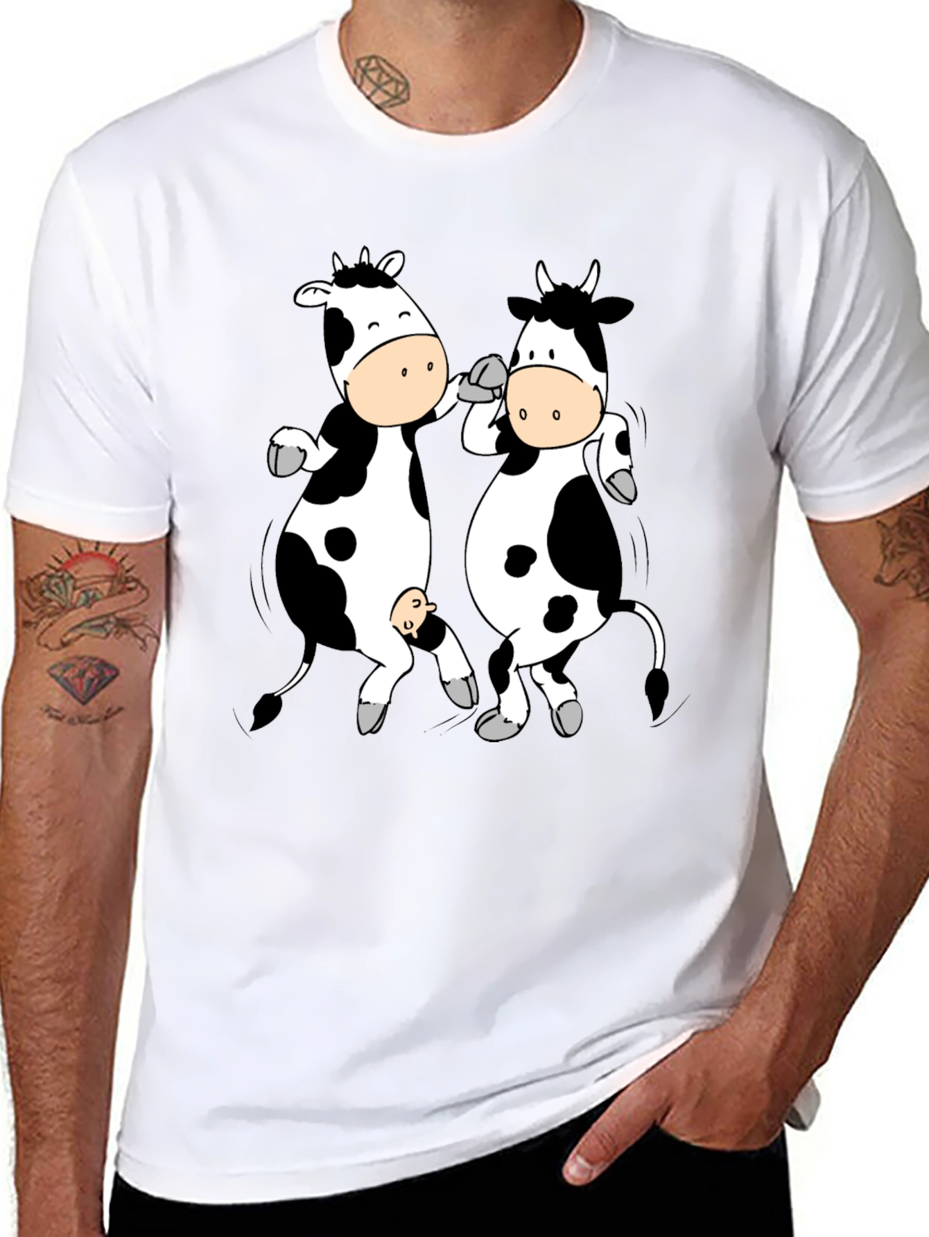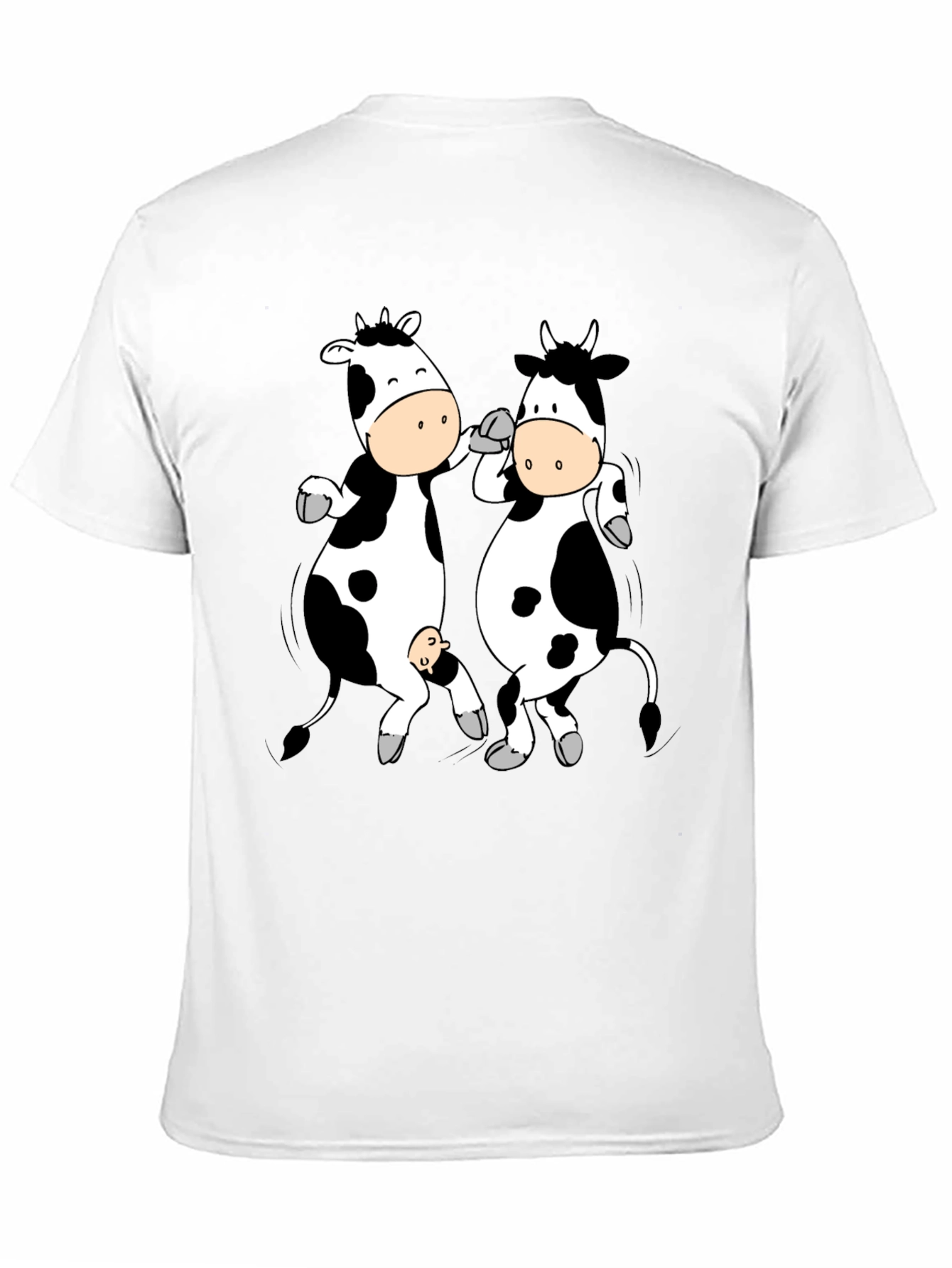This black t-shirt features a playful design of two cartoon cows. Made from soft, breathable cotton, this tee offers both comfort and style. The vibrant cow graphic adds a touch of humor, making it a great conversation starter. Ideal for casual wear, parties, or as a fun gift for animal lovers. This shirt is sure to bring a smile to everyone's face. Upgrade your wardrobe with this unique and eye-catching piece!