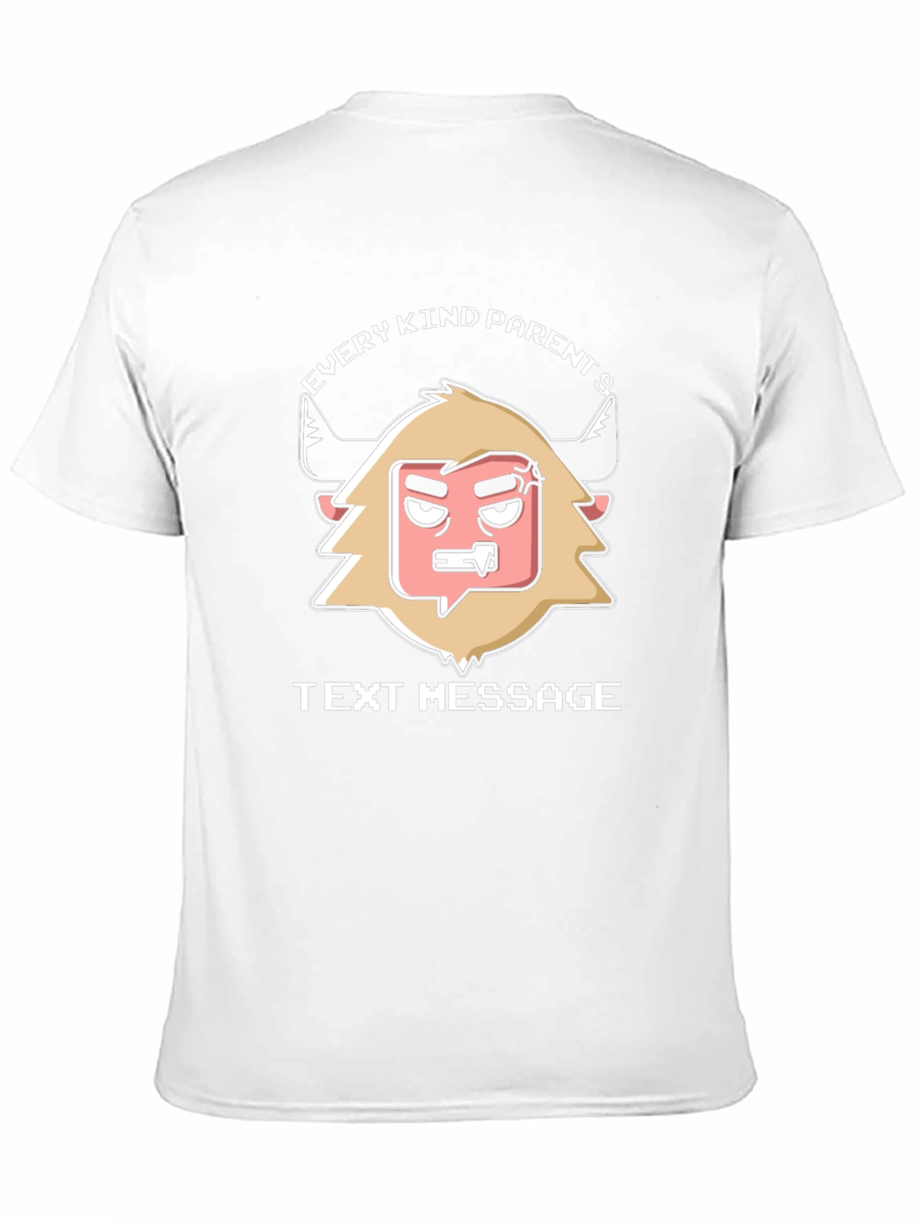 This unique black t-shirt features a humorous graphic design. The design includes a cartoonish, monster-like face with a message bubble shape, suggesting it might be a depiction of a parental text message. The phrase "EVERY KIND PARENTS" curves above the image, while "TEXT MESSAGE" is displayed below in a pixelated font, adding a retro tech vibe to the overall design. Made from a soft, comfortable fabric, this tee is perfect for casual wear, outings, or as a conversation starter. Wear it to family gatherings, school events, or any place where you want to showcase your unique sense of humor and style. It’s an ideal gift for parents with a good sense of humor or anyone who appreciates witty, graphic designs.