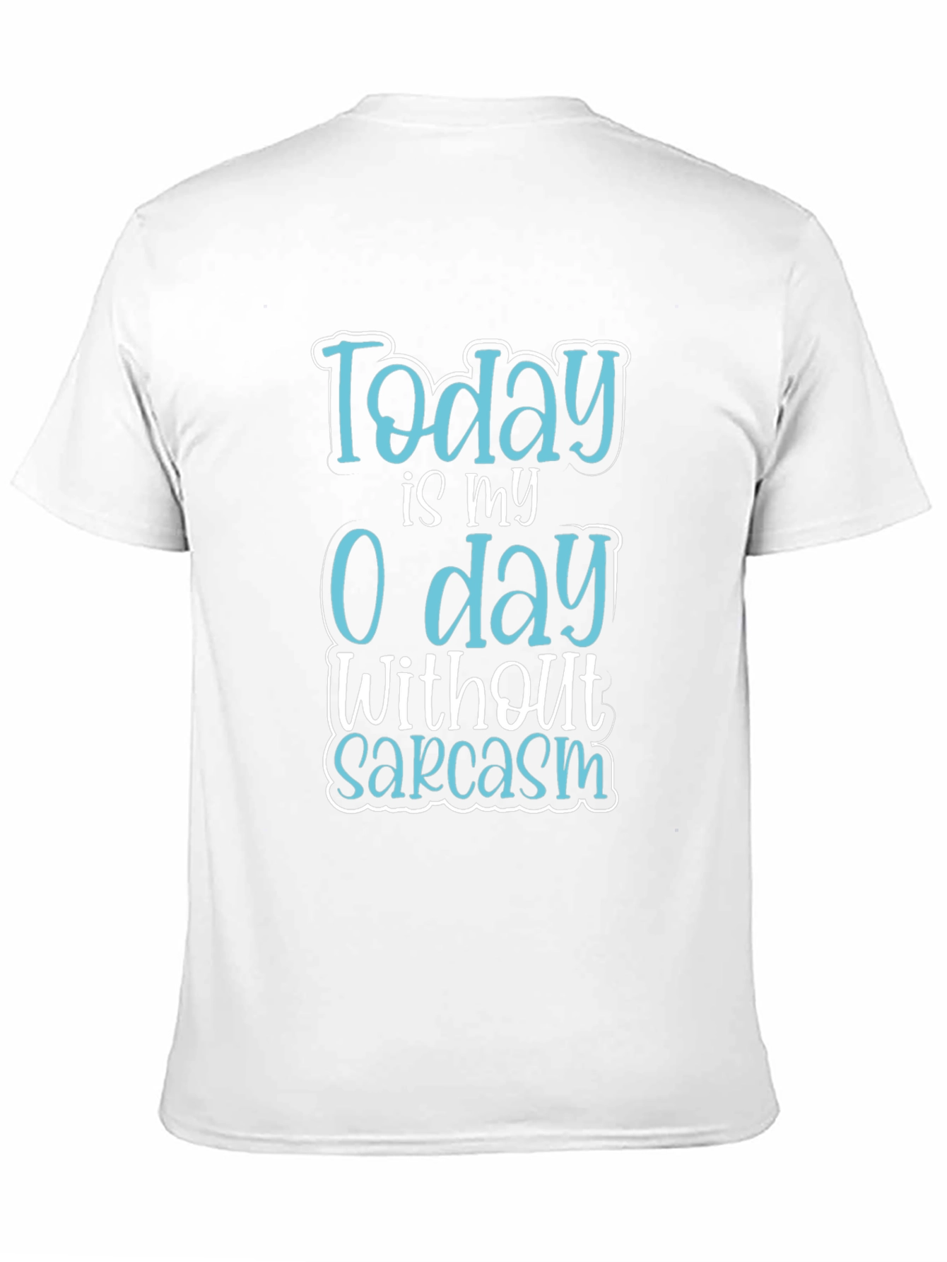 Show off your witty side with this hilarious black t-shirt featuring the statement "Today is my 0 day without sarcasm" in a playful, eye-catching blue and white font. Made from a comfortable-looking fabric, this tee is perfect for casual wear and guaranteed to get a laugh. Whether you're running errands, hanging out with friends, or just lounging at home, this shirt is a fun way to express your personality and add a touch of humor to your everyday style. Get ready to embrace your inner sarcastic self and wear this tee with pride!