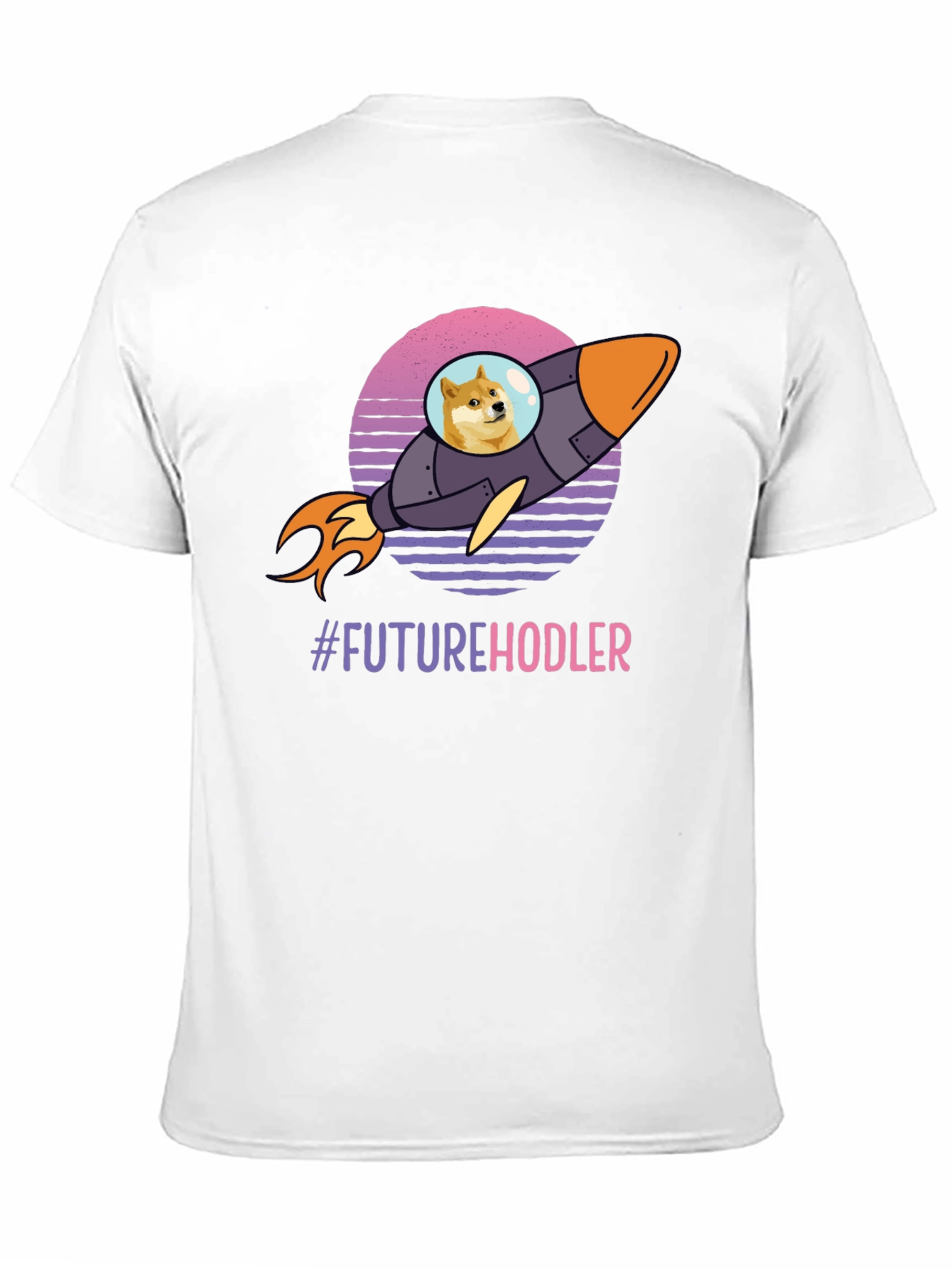 Blast off to the moon with this eye-catching "Future Hodler" t-shirt! Featuring a Shiba Inu dog in a rocket ship, this tee is perfect for cryptocurrency enthusiasts and meme lovers alike. The design pops with vibrant sunset-inspired colors, contrasted against the shirt's sleek black backdrop. Made from a comfortable and durable fabric, this t-shirt is ideal for everyday wear or showing off your passion at crypto meetups. Make a statement and let everyone know you're in it for the long haul with this unique and stylish piece. Grab yours today and join the future of finance!