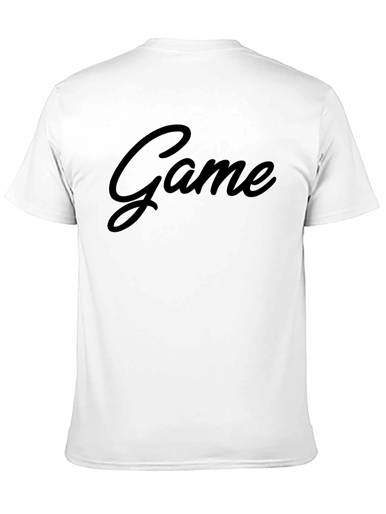 Dominate your style game with this sleek, all-black T-shirt. Featuring the word 'Game' in a stylish, cursive font, this shirt is perfect for casual wear. The solid black color offers versatility, allowing it to be paired with jeans, shorts, or joggers. Made from comfortable, breathable fabric, it ensures a relaxed fit for all-day wear. Whether you're heading out with friends or gaming at home, this tee will keep you looking sharp and feeling great. A must-have addition to any modern wardrobe for expressing your passion for games.