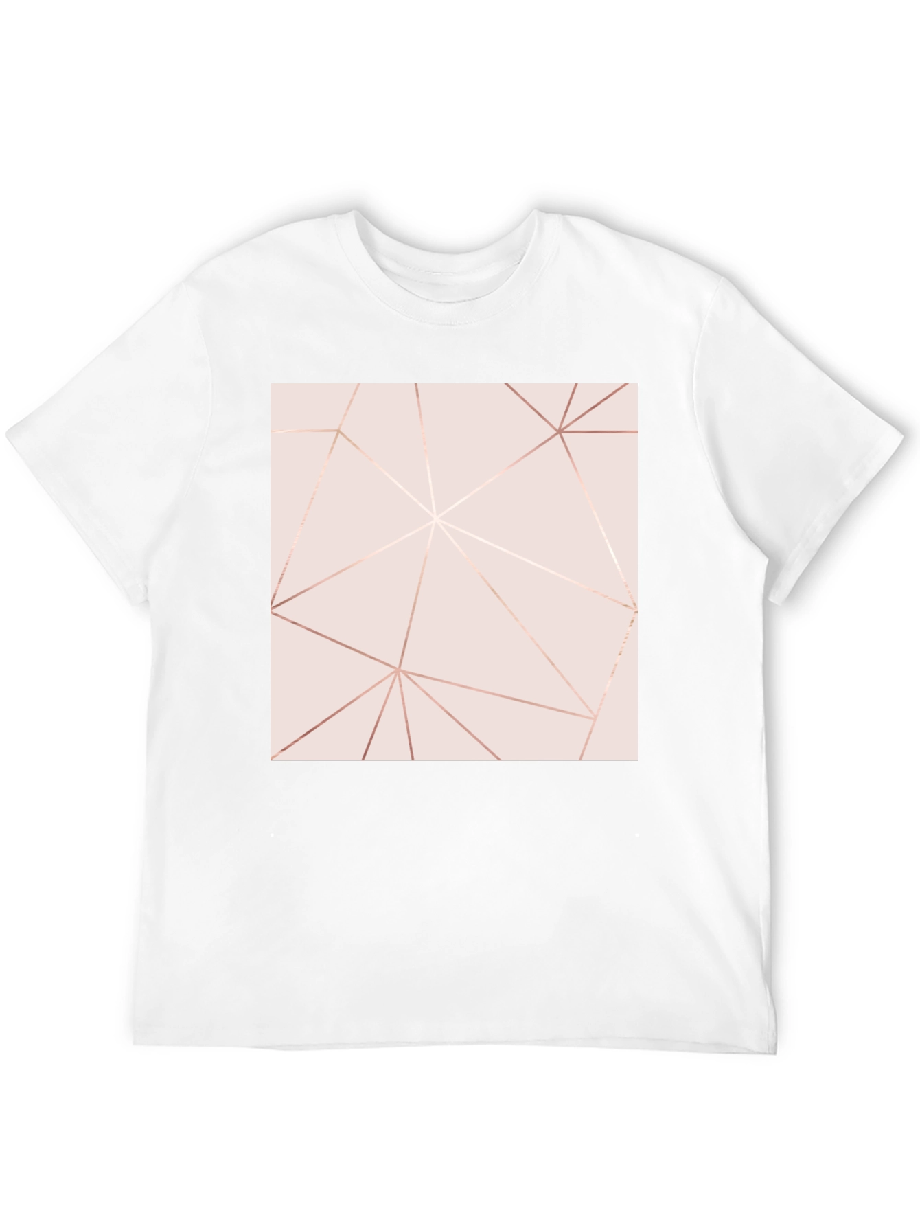 Elevate your casual wardrobe with this stylish black tee featuring a modern geometric design. The blush and rose gold colored pattern is set against a clean white square on the front, creating a striking visual contrast. Crafted from a soft-looking breathable fabric, this t-shirt ensures all-day comfort and a flattering fit. Ideal for everyday wear, casual outings, or as a statement piece for a relaxed, stylish look. Pair it with jeans or chinos for a versatile outfit. Add some modern art flair to your style!