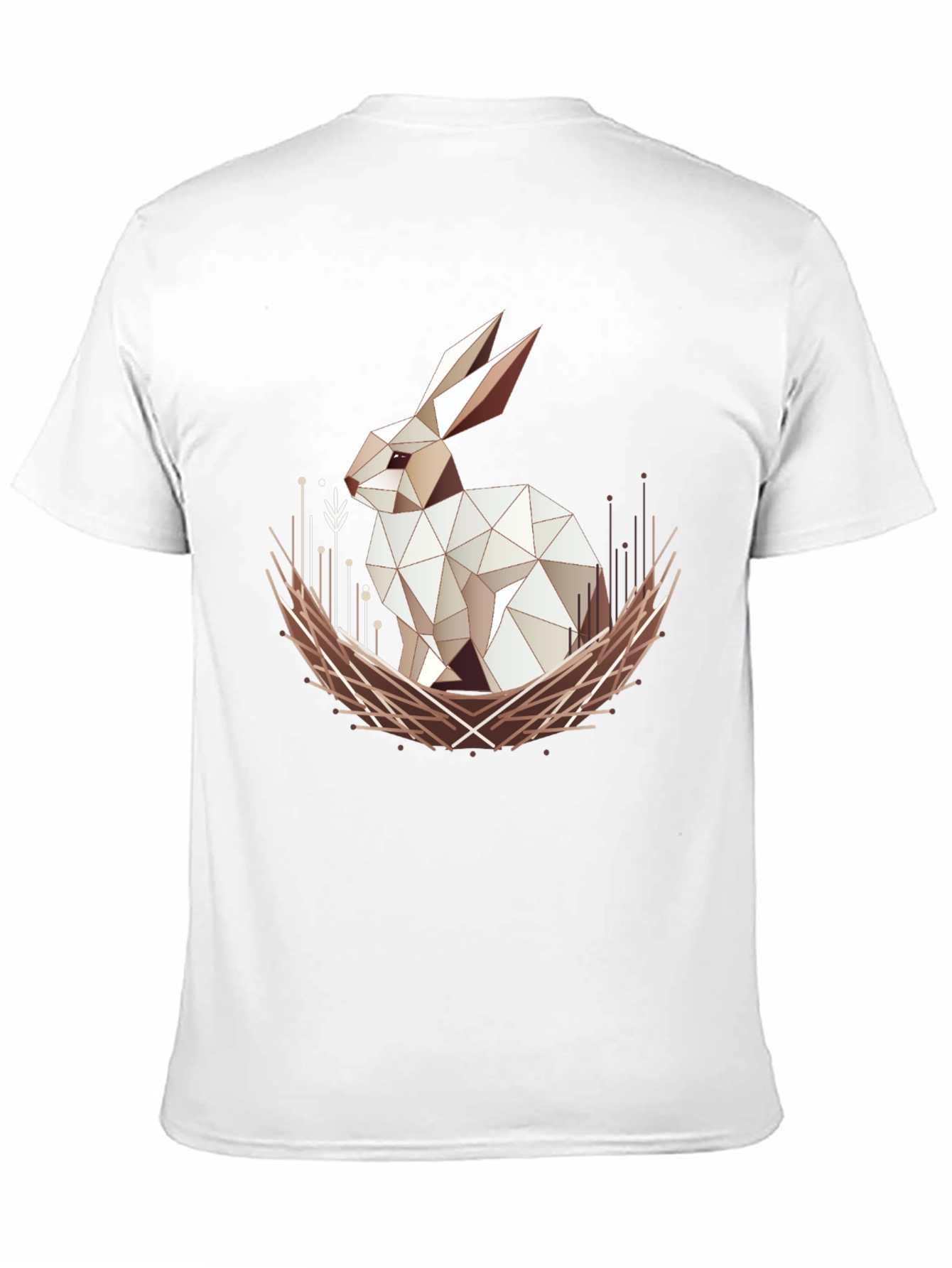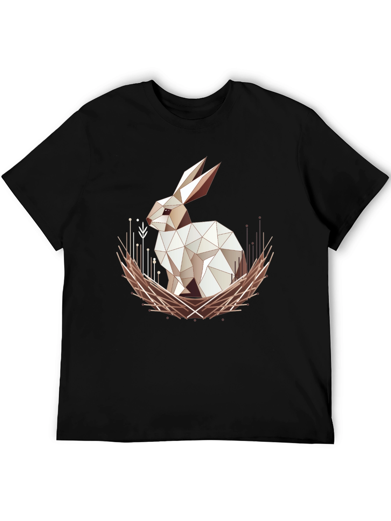 Showcase your unique style with this modern black tee. Featuring a striking geometric rabbit design, this shirt offers a clean, contemporary aesthetic. The design is composed of triangular facets that make the rabbit stand out. The soft fabric ensures all-day comfort, whether you're out with friends or relaxing at home. The versatile black color is perfect for pairing with any outfit. Add a touch of artistic flair to your wardrobe with this eye-catching graphic tee.
