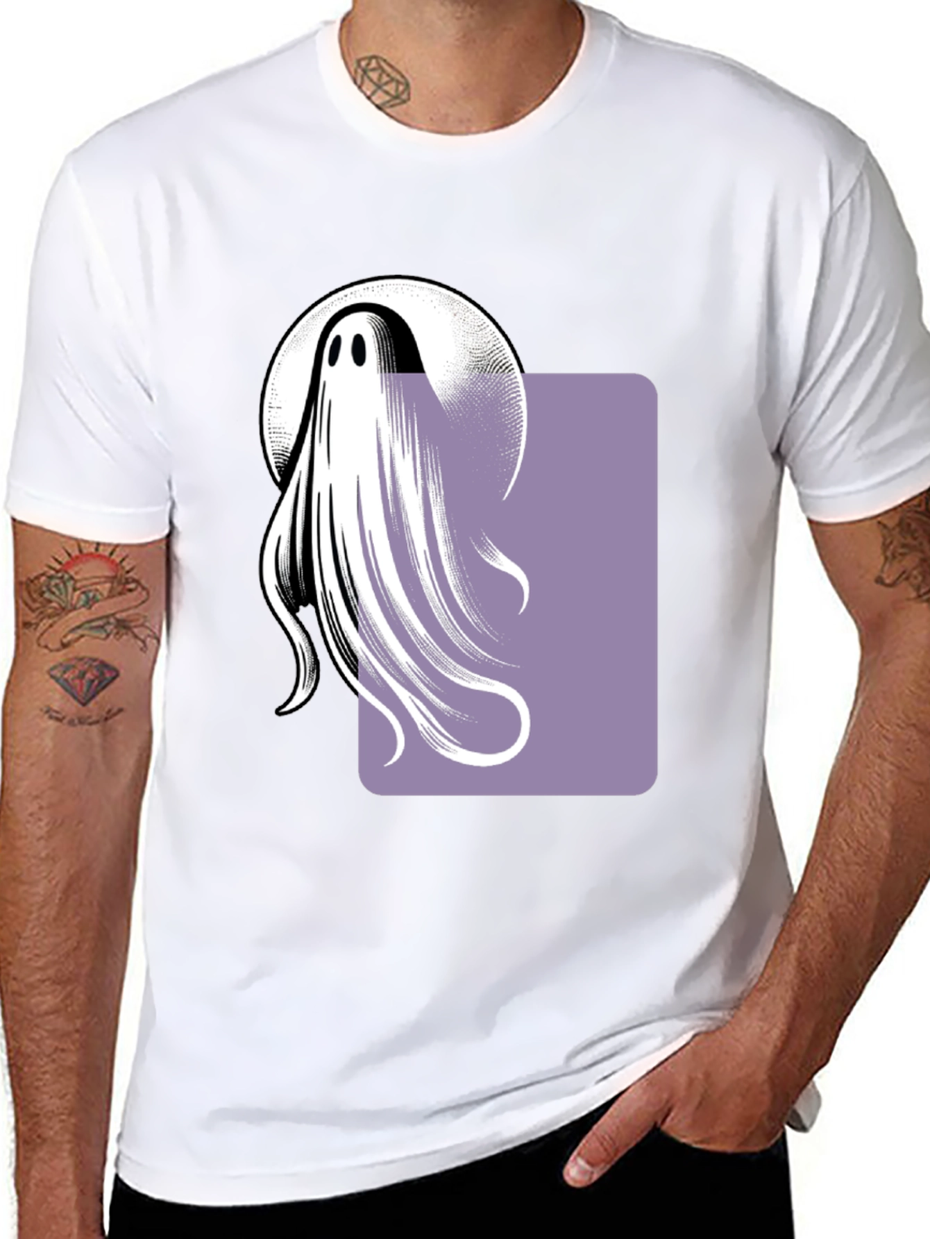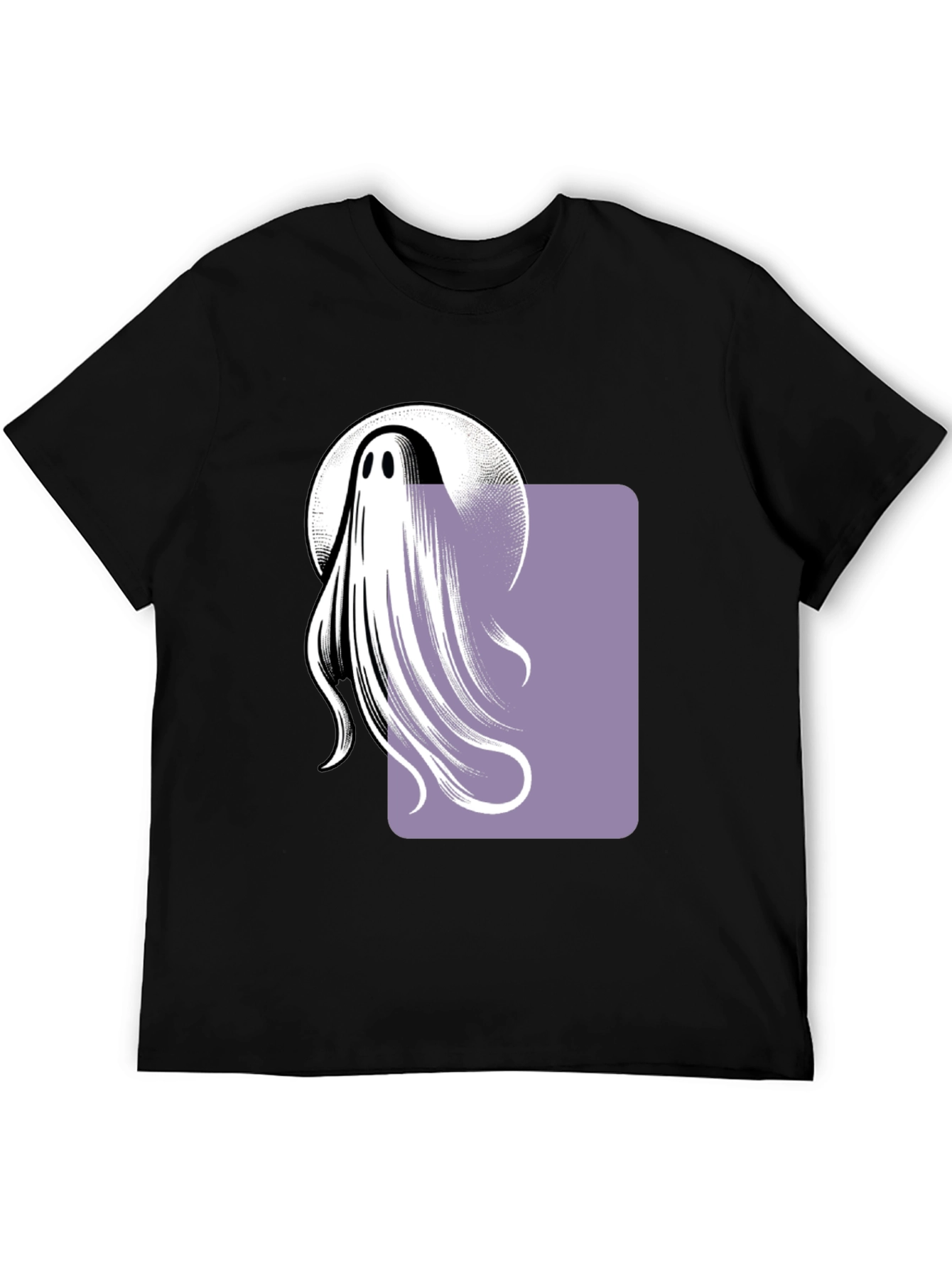 Get spooky in style with this unique graphic tee! The shirt features a ghostly white figure against a muted purple backdrop. The design gives off Halloween vibes. Constructed from a soft and breathable fabric, this tee offers both comfort and durability. The simple and bold design makes a statement without being too flashy. This shirt is perfect for Halloween parties, casual outings, or anyone who loves something a little different. Pair it with jeans for an easy, everyday look.