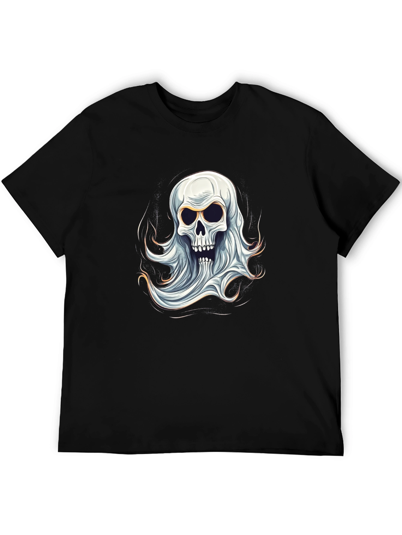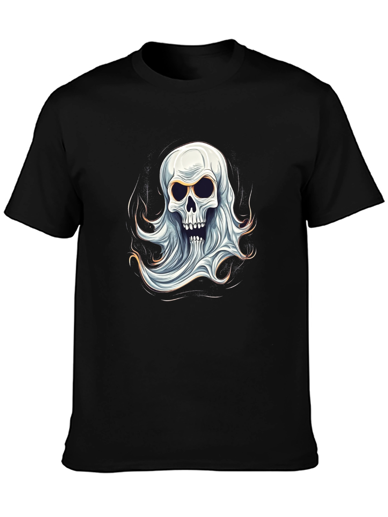 Ghostly Skull Graphic Tee - Spooky Halloween Shirt