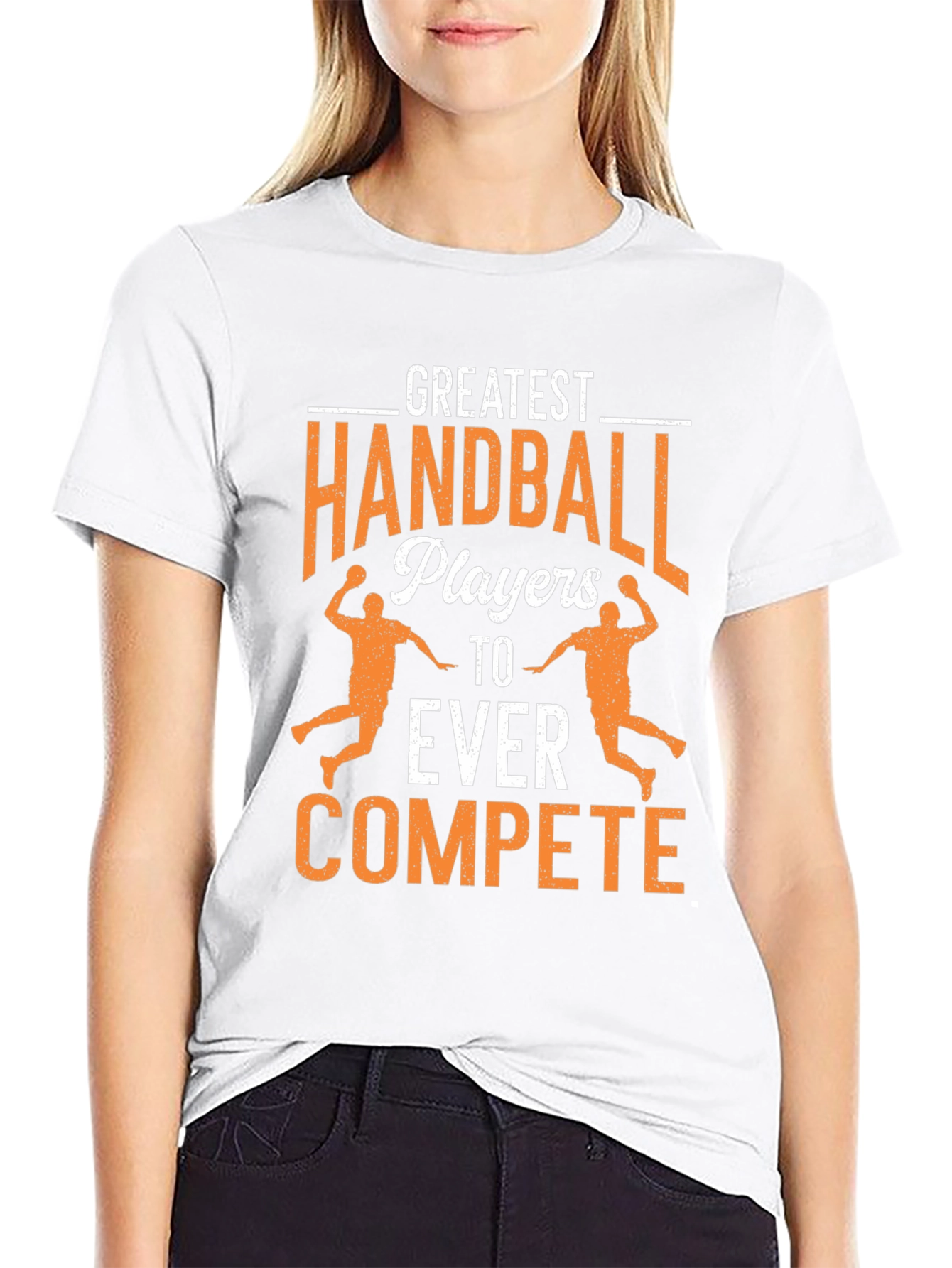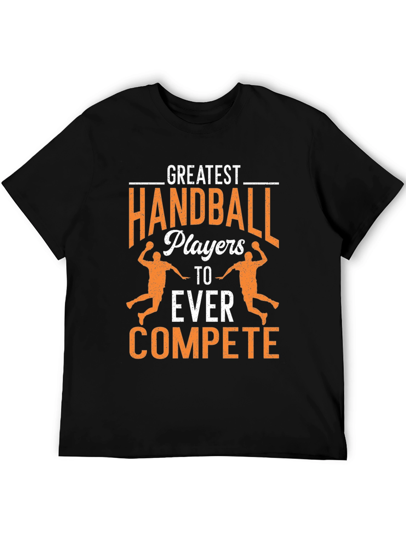 Show your love for handball with this stylish black t-shirt! Featuring a bold graphic design with the words 'Greatest Handball Players to EVER Compete,' it's perfect for fans and players alike. The design also includes silhouette images of handball players, adding an athletic touch. Made from comfortable fabric, this tee is ideal for casual wear, sports events, or hitting the gym. A must-have for any handball enthusiast who wants to stand out in style. Get yours today and celebrate the sport!