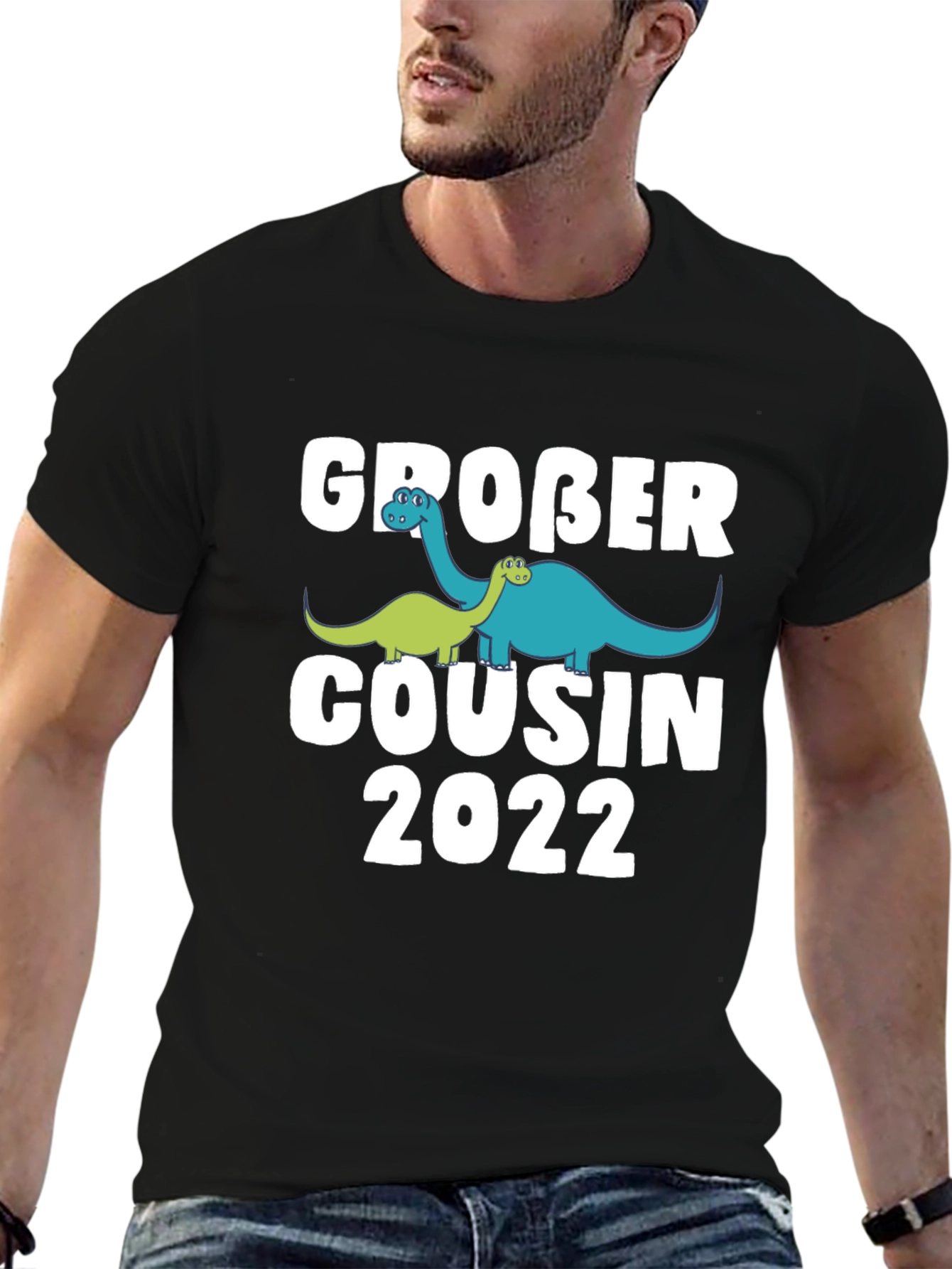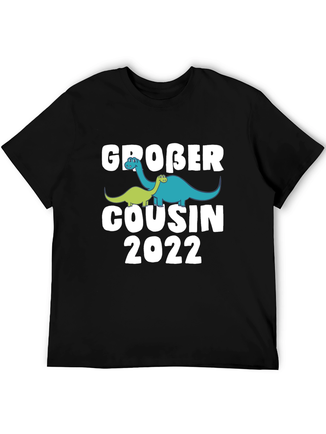 Show off your family pride with this unique Großer Cousin 2022 t-shirt! The design features two adorable cartoon dinosaurs, one green and one blue, printed in high quality. The words "Großer Cousin" and "2022" are printed in bold white letters above and below the dinosaurs. Made from soft and breathable fabric, this black t-shirt is comfortable to wear all day long. It's the perfect shirt to wear to family gatherings, parties, or any special occasion. Celebrate your special connection with this charming and memorable t-shirt.