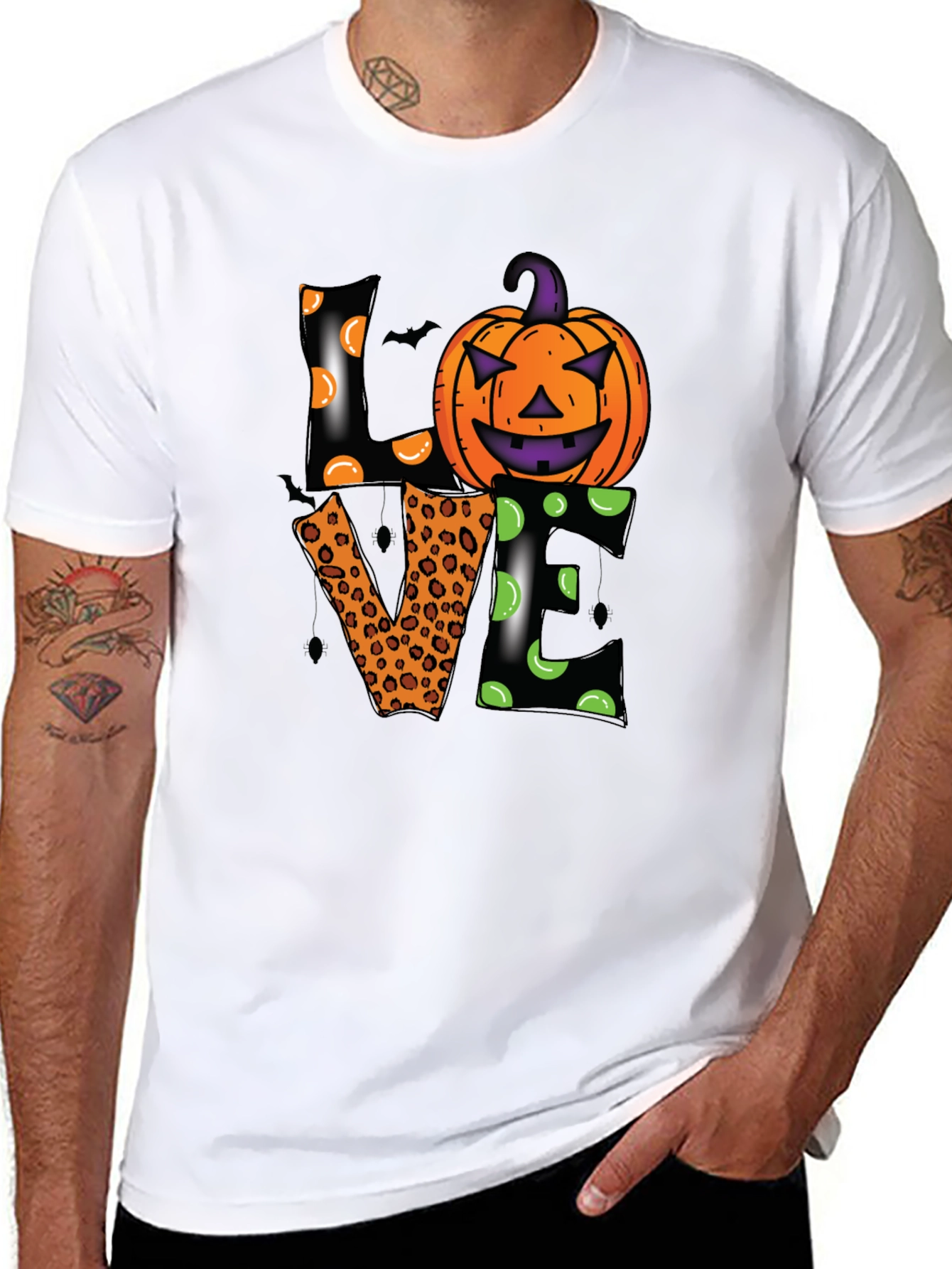 Get ready for spooky season with this adorable Halloween-themed tee! The black t-shirt features the word "LOVE" in playful, seasonal designs. The "L" has orange candy corn shapes, the "O" is replaced with a grinning jack-o'-lantern, the "V" features a leopard print pattern and the "E" is adorned with green polka dots. The festive tee is perfect for Halloween parties, trick-or-treating, or just showing off your love for the holiday. Dress it up or down for versatile styling options. A fun and unique addition to your Halloween wardrobe!